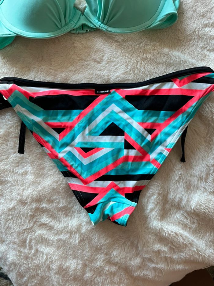 Je mets en vente ce maillot de bain 2 pièces de la marque Tribord de décathlon , en taille 34, parfait pour l'été 🌞 Il est en très bon état, porté très peu de fois, et lavé avec soin. 🔹 Haut : bleu uni, coupe push-up avec bonnets rembourrés, qui met en valeur la poitrine. Bretelles classiques et attache dans le dos. 🔹 Bas : culotte à motifs géométriques dans les tons rose, noir et bleu, avec liens à nouer sur les côtés pour un ajustement parfait. Ce maillot de bain Tribord 2 pièces est à la fois coloré, féminin et confortable. L’association du haut bleu effet push-up et du bas géométrique donne un look à la fois tendance et original. Idéal pour la plage, la piscine ou pour flâner au soleil avec style 🌴 ✨ Il convient parfaitement aux femmes ou ados portant du 34 (équivalent XS). Le push-up galbe subtilement la poitrine, et le bas à lacer sur les côtés permet de l’ajuster facilement à la morphologie.