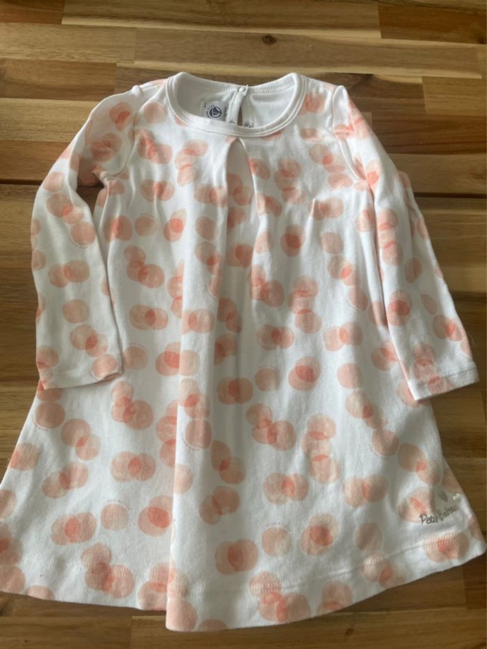 Robe petit bateau blanc pois rose coton fille manches longues 24 mois