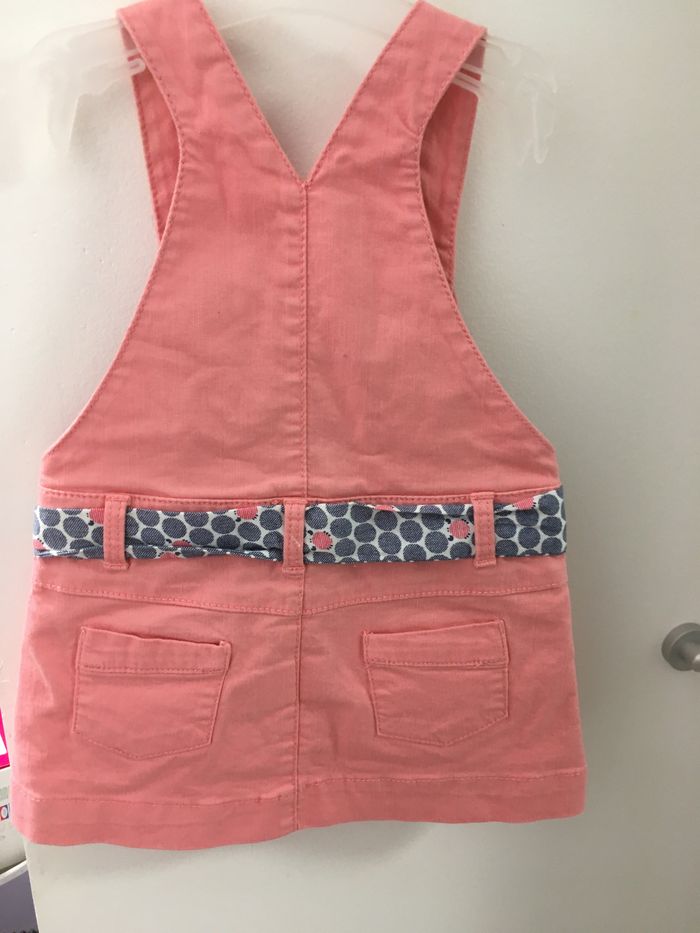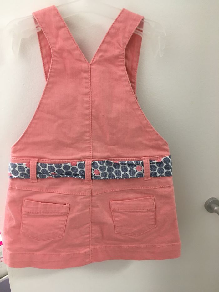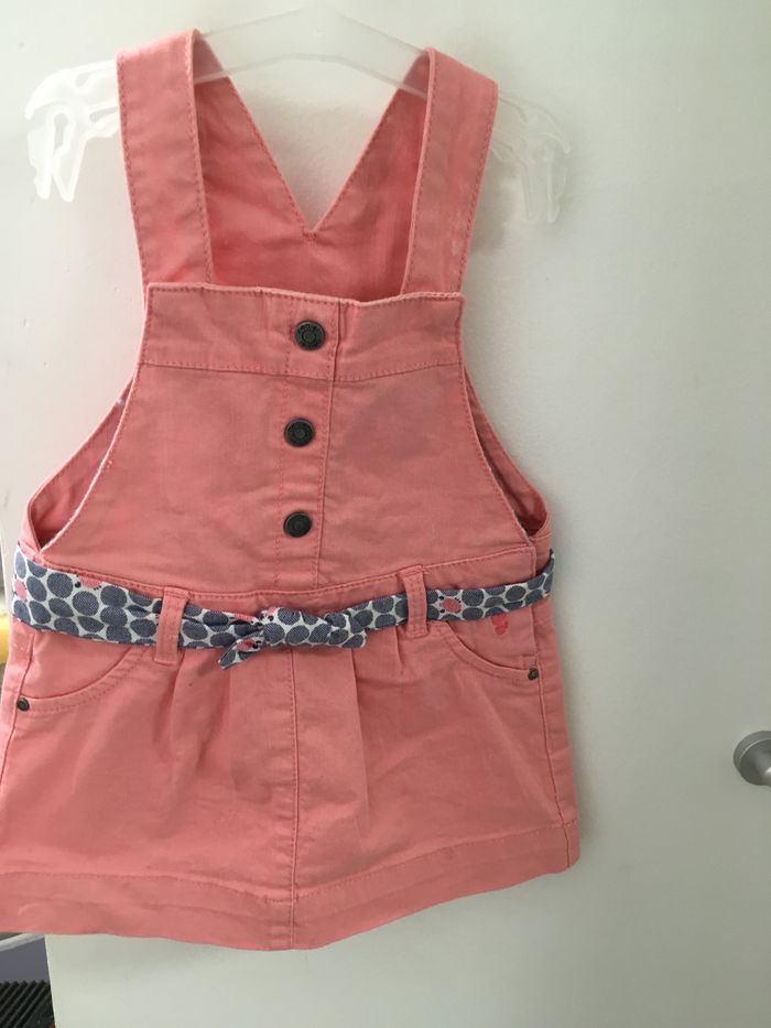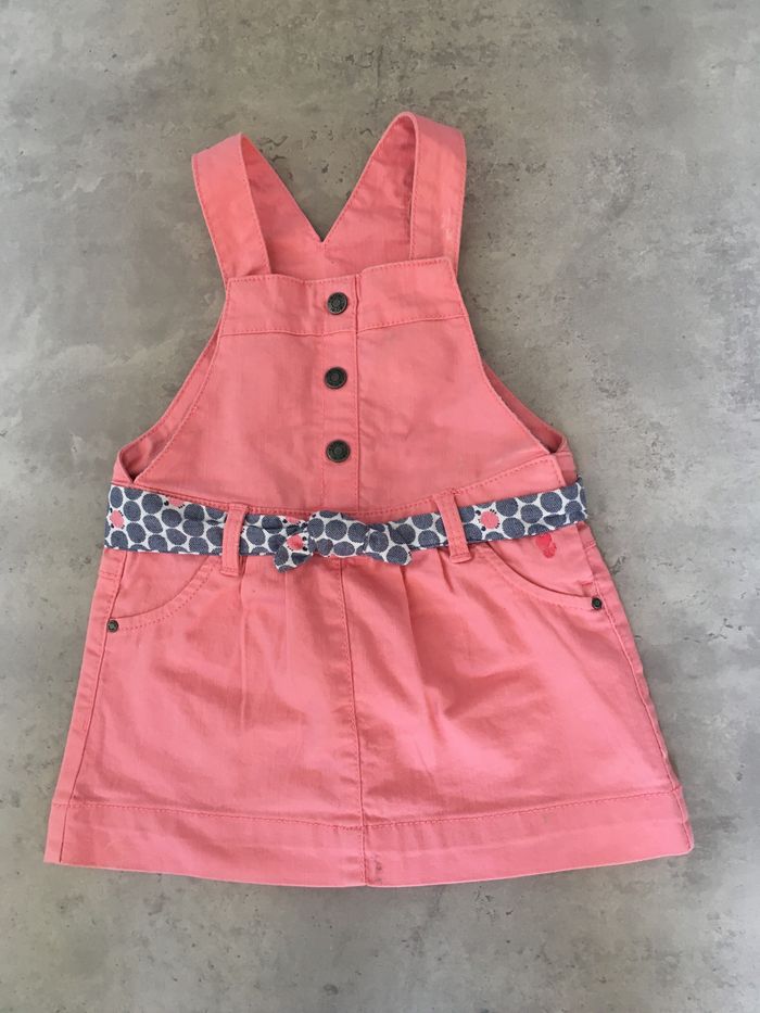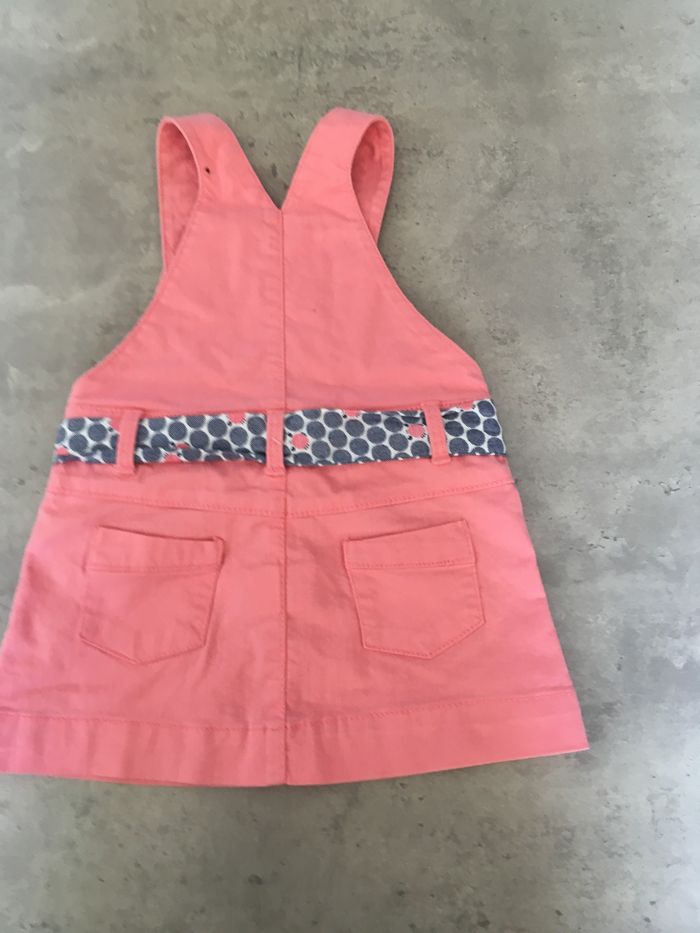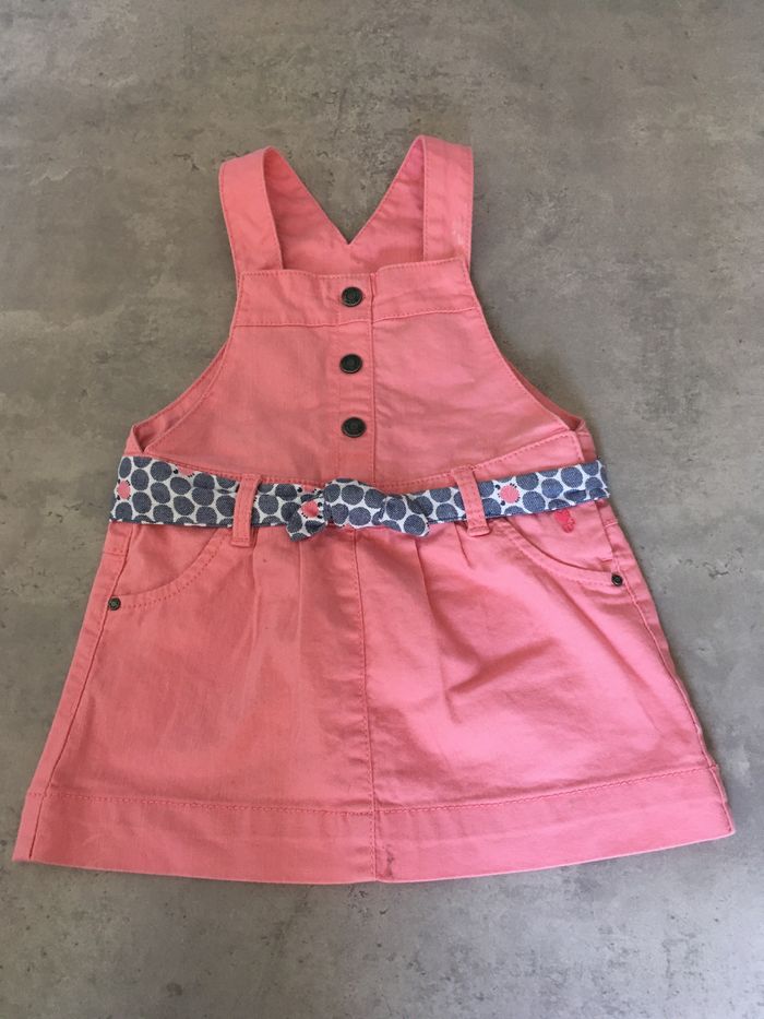 Robe bébé 9 mois 71 cm Rose avec ruban gris à pois Bretelles réglables Neuve avec étiquette 98 % coton 2 % elasthane