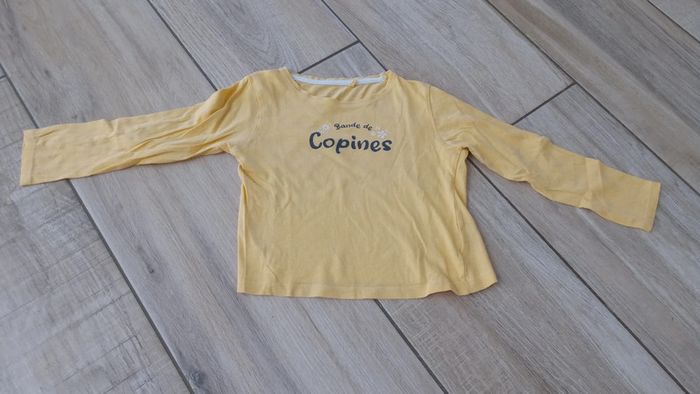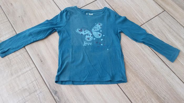Lot de 5 tee-shirts à manches longues de chez La Halle Tous sans défaut à part le vert qui a commencé à perdre sa couleur (dernière photo mais pas sûre que ça se voit bien) #vetementsfille #4ans #4ansfille