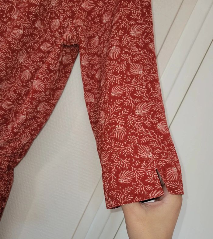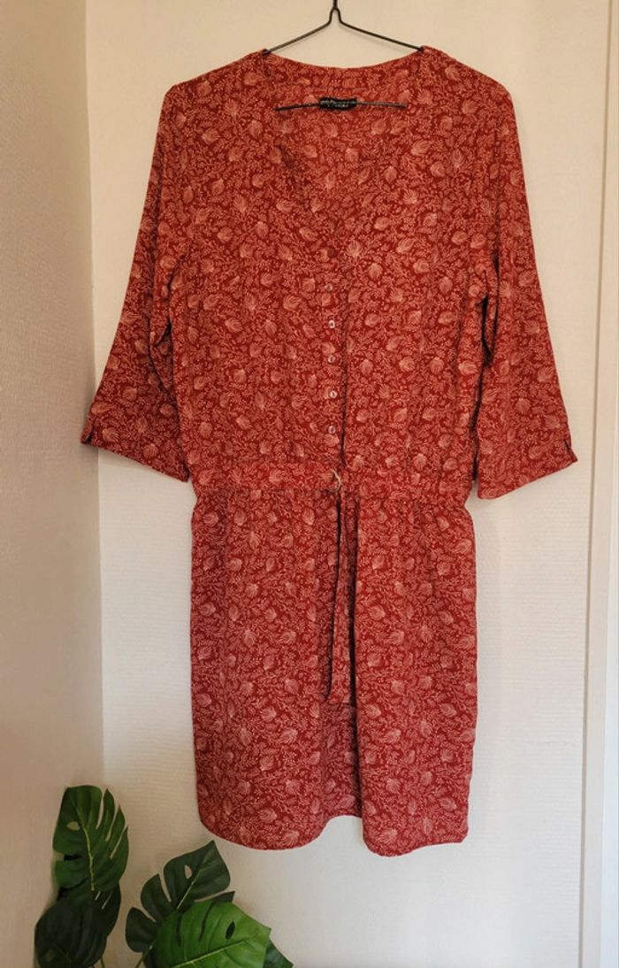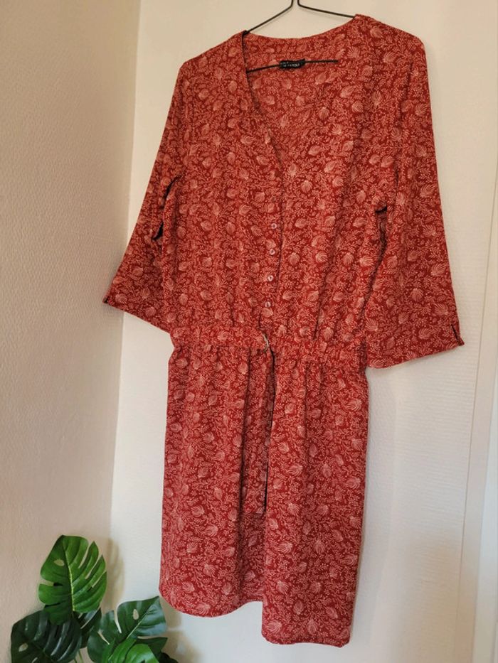 Robe trois quarts avec doublure et ceinture à motifs feuilles
