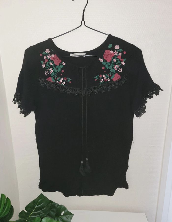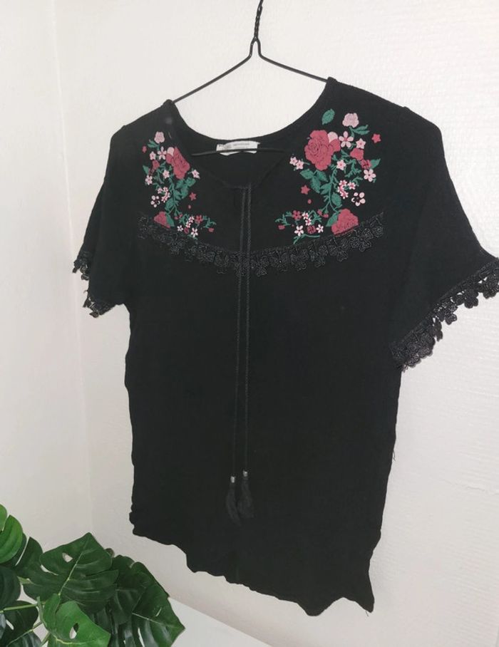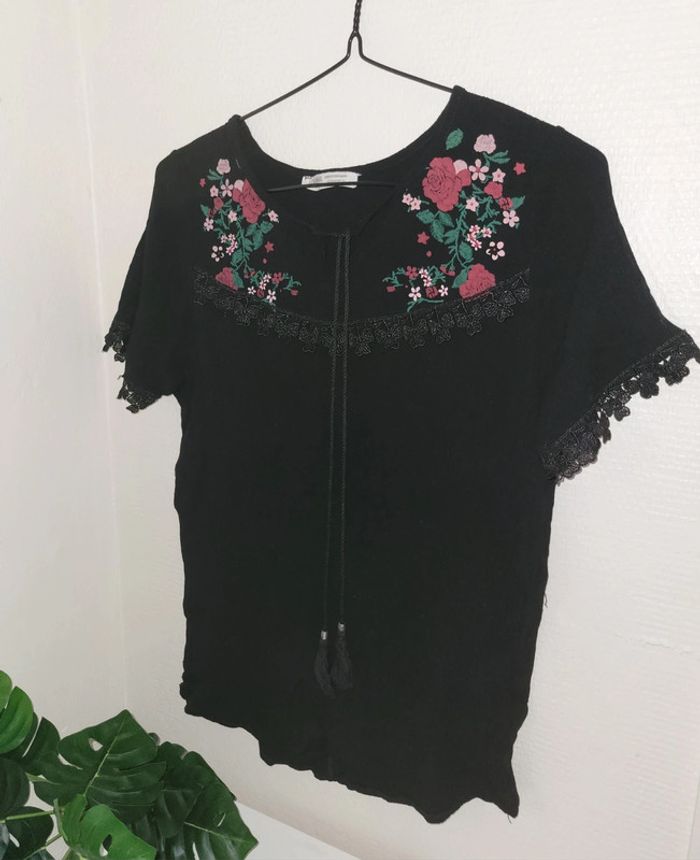Blouse noir avec dentelle et broderie - photo numéro 1