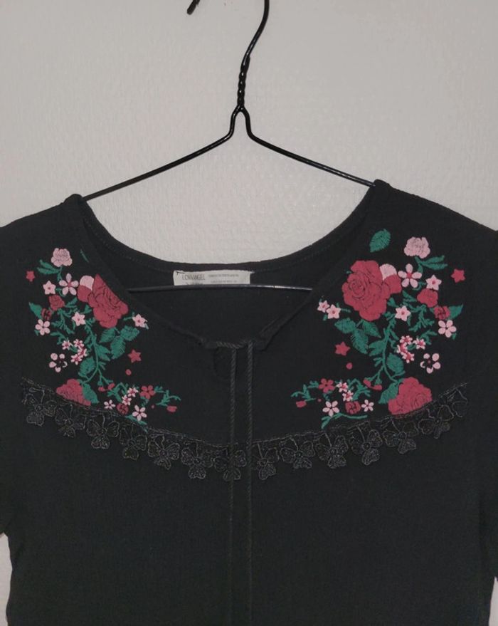 Blouse noir avec dentelle et broderie - photo numéro 7