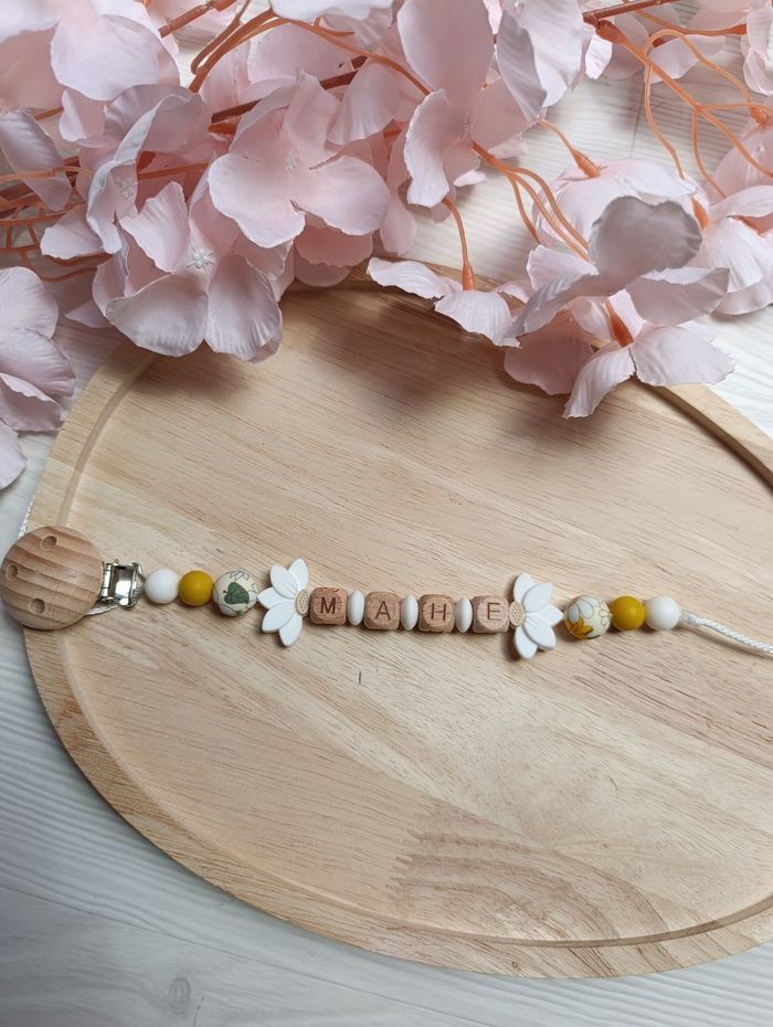 Attache tétine en bois et silicone Prénom au choix D'autres couleurs possibles