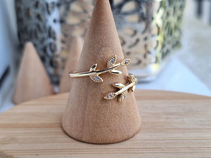 Bague ouverte dorée en forme de feuilles avec strass en acier inoxydable – Bague de fiançailles - photo numéro 4