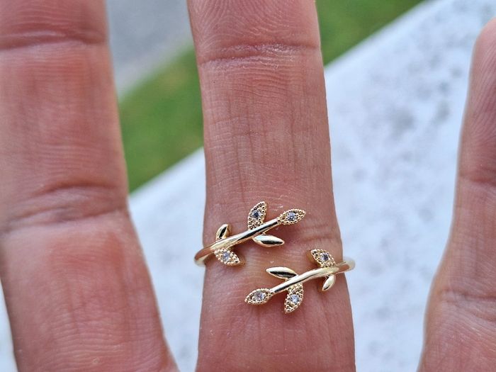 Bague ouverte dorée en forme de feuilles avec strass en acier inoxydable – Bague de fiançailles - photo numéro 5