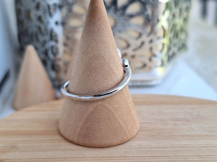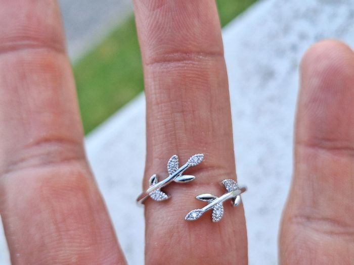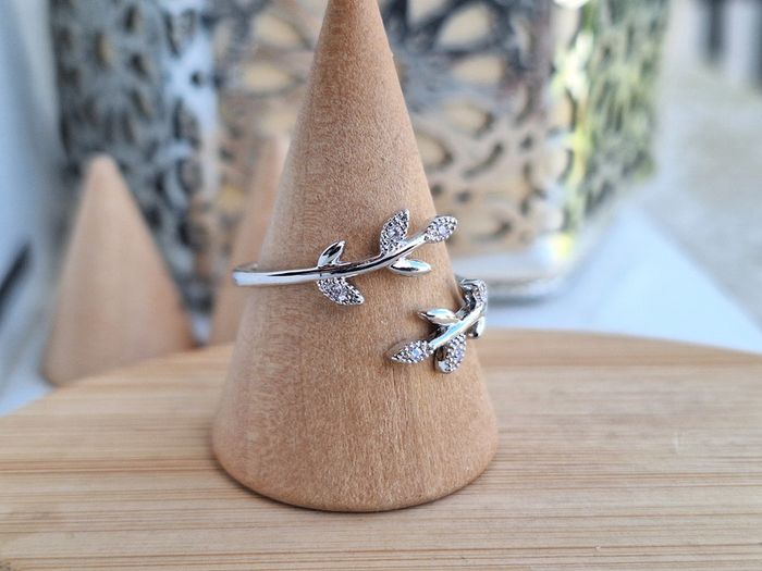 Bague ouverte Argentée en forme de feuilles avec strass en acier inoxydable – Bague de fiançailles - photo numéro 5