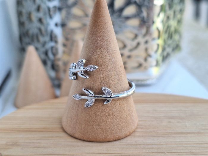 Bague ouverte Argentée en forme de feuilles avec strass en acier inoxydable – Bague de fiançailles - photo numéro 4