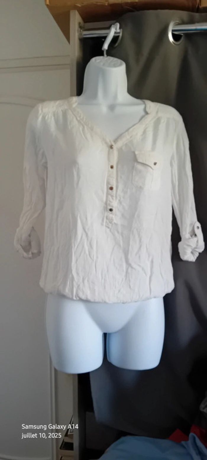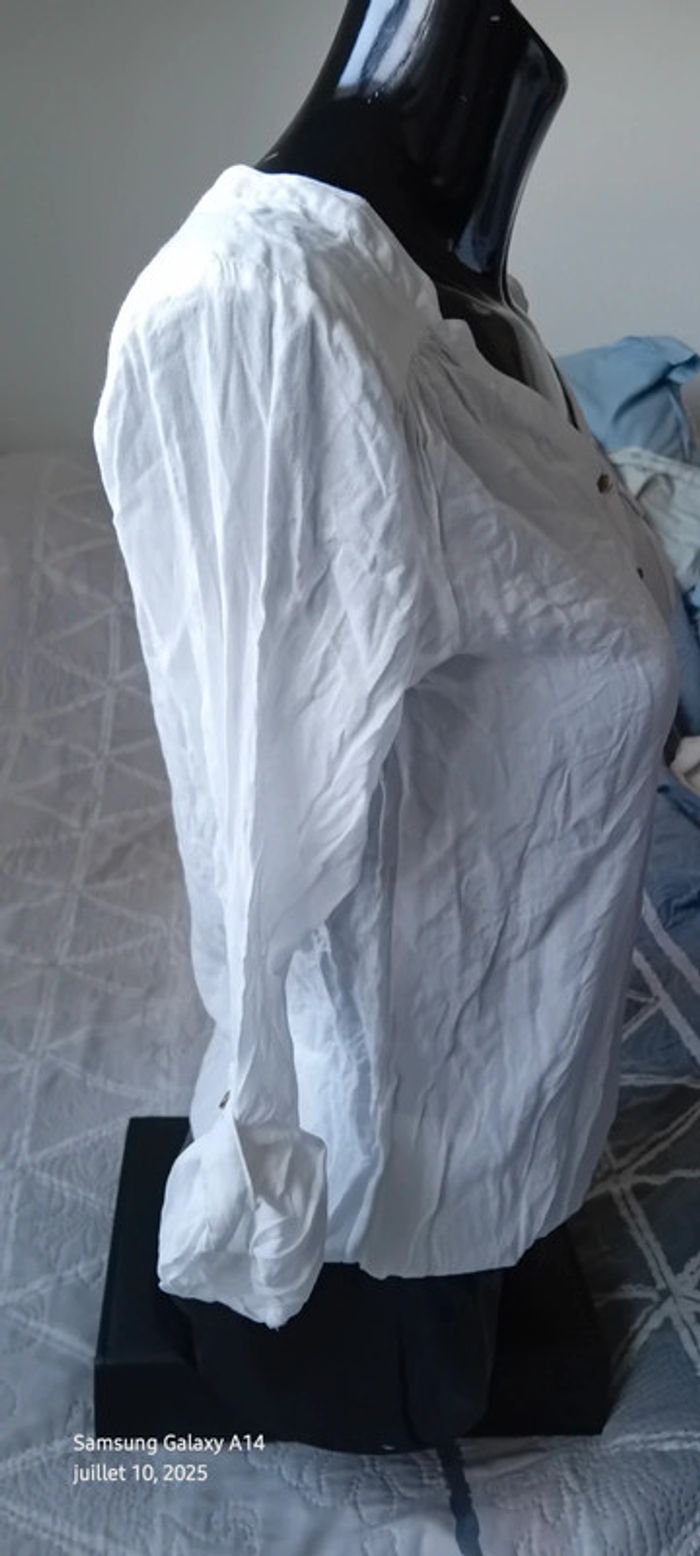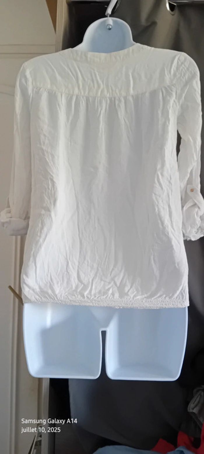 Blouse blanche manches ajustables poche devant avec boutons dorés femme M camaïeu - photo numéro 20