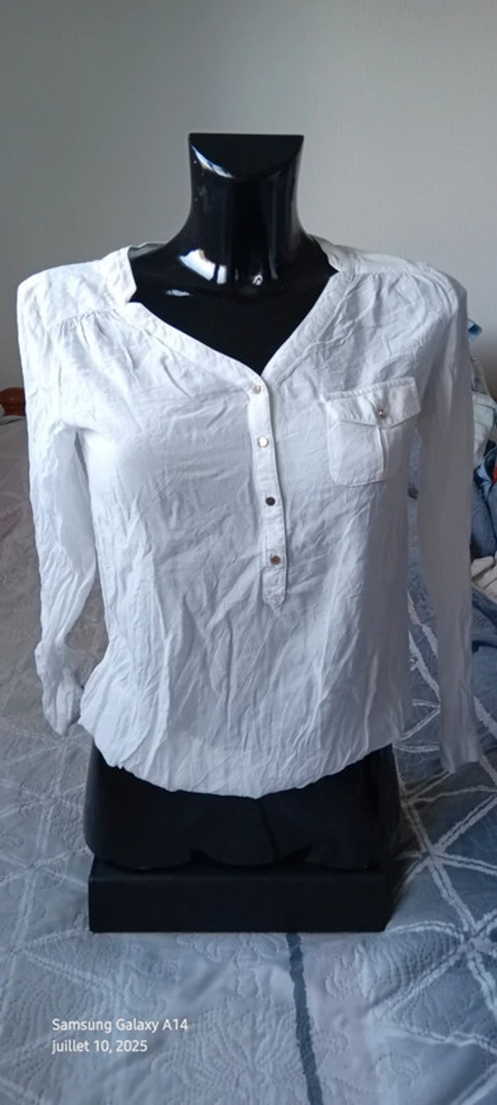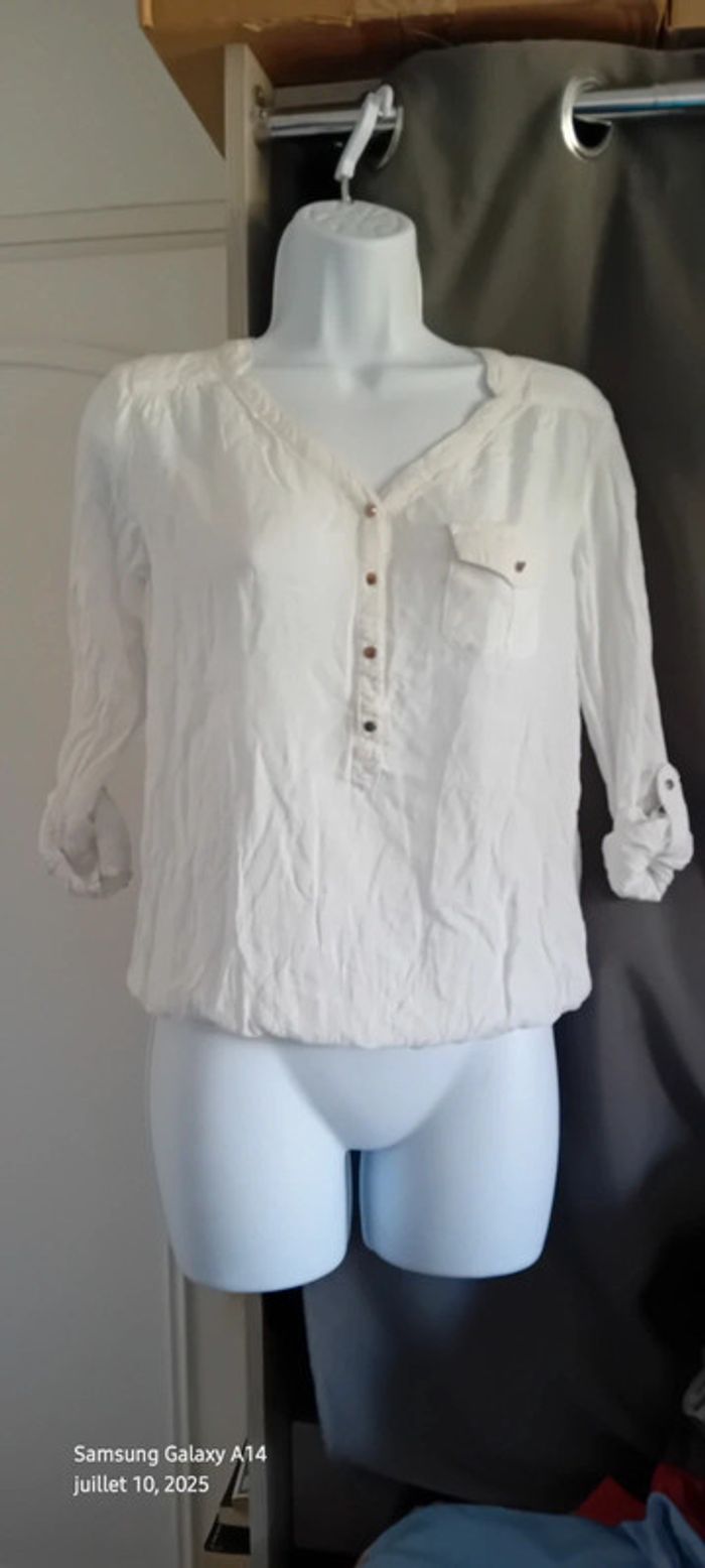 Blouse blanche manches ajustables poche devant avec boutons dorés femme M camaïeu - photo numéro 1