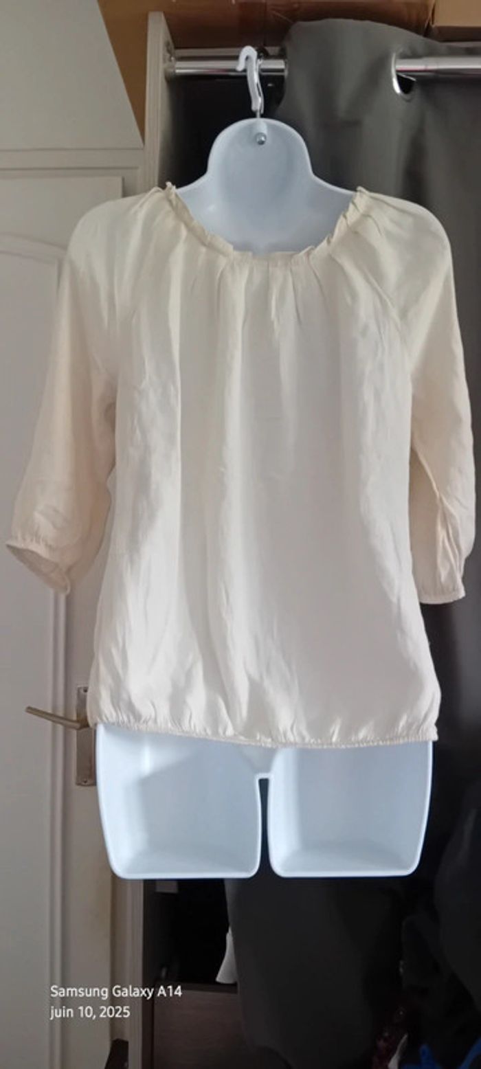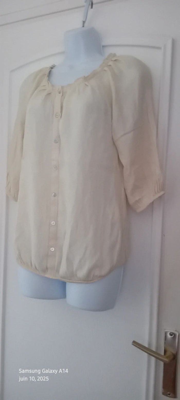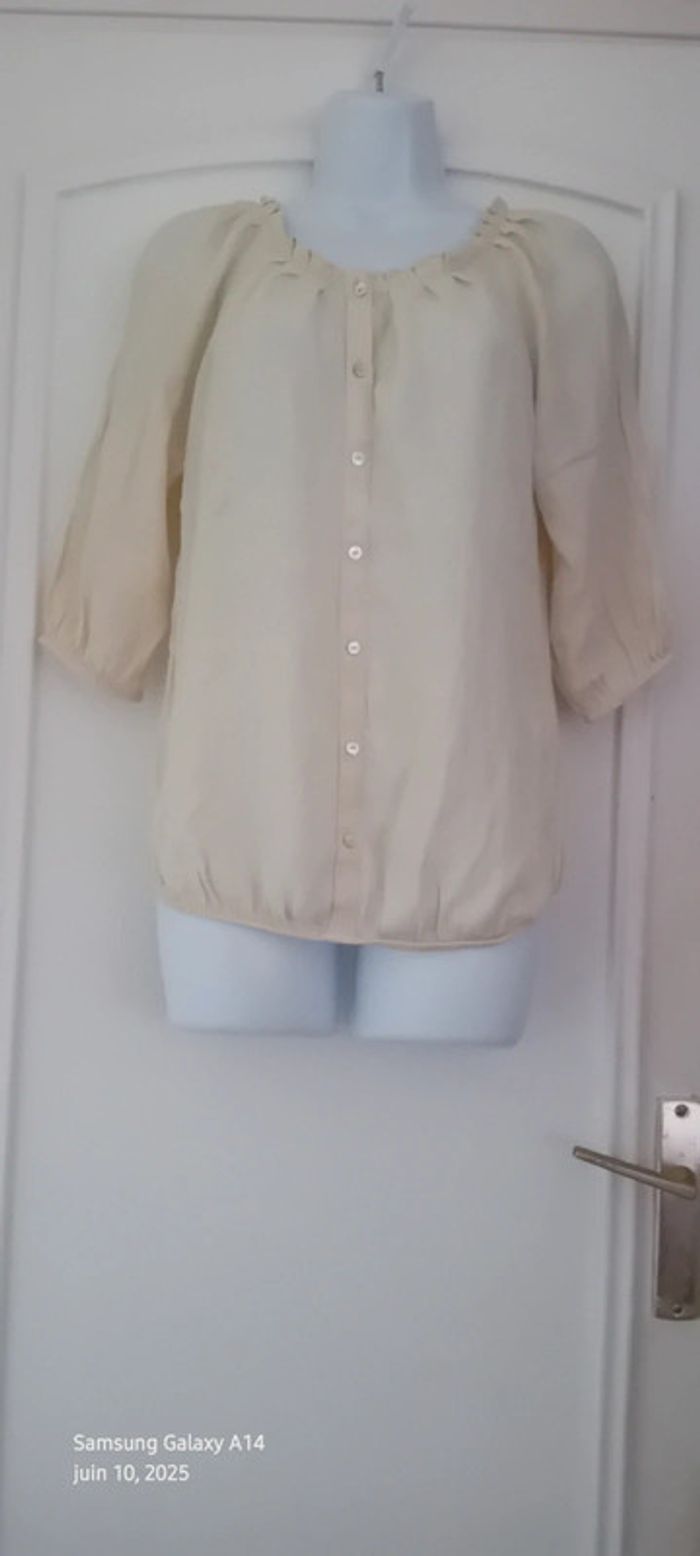 Blouse légère manches 3/4 col frisottis bas élastique crème femme L camaïeu - photo numéro 1