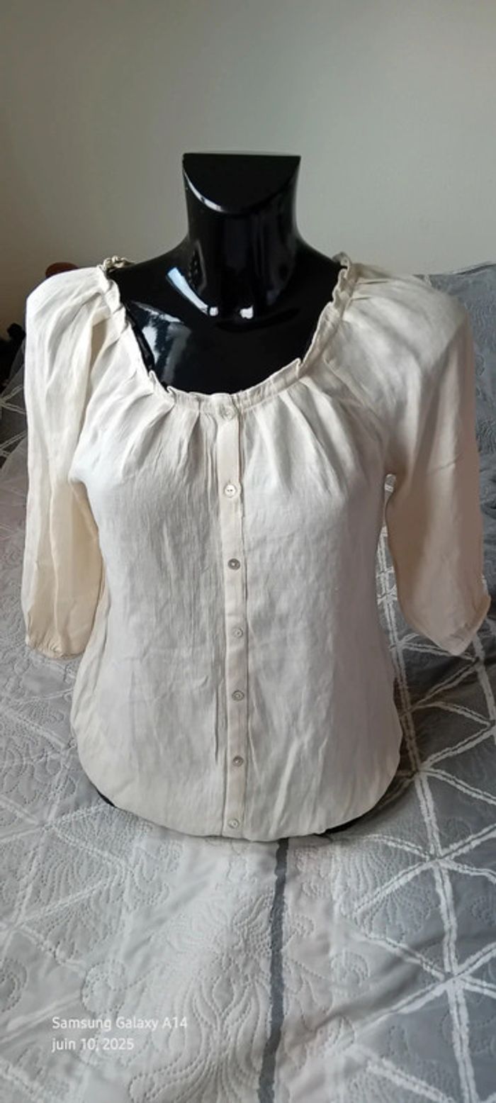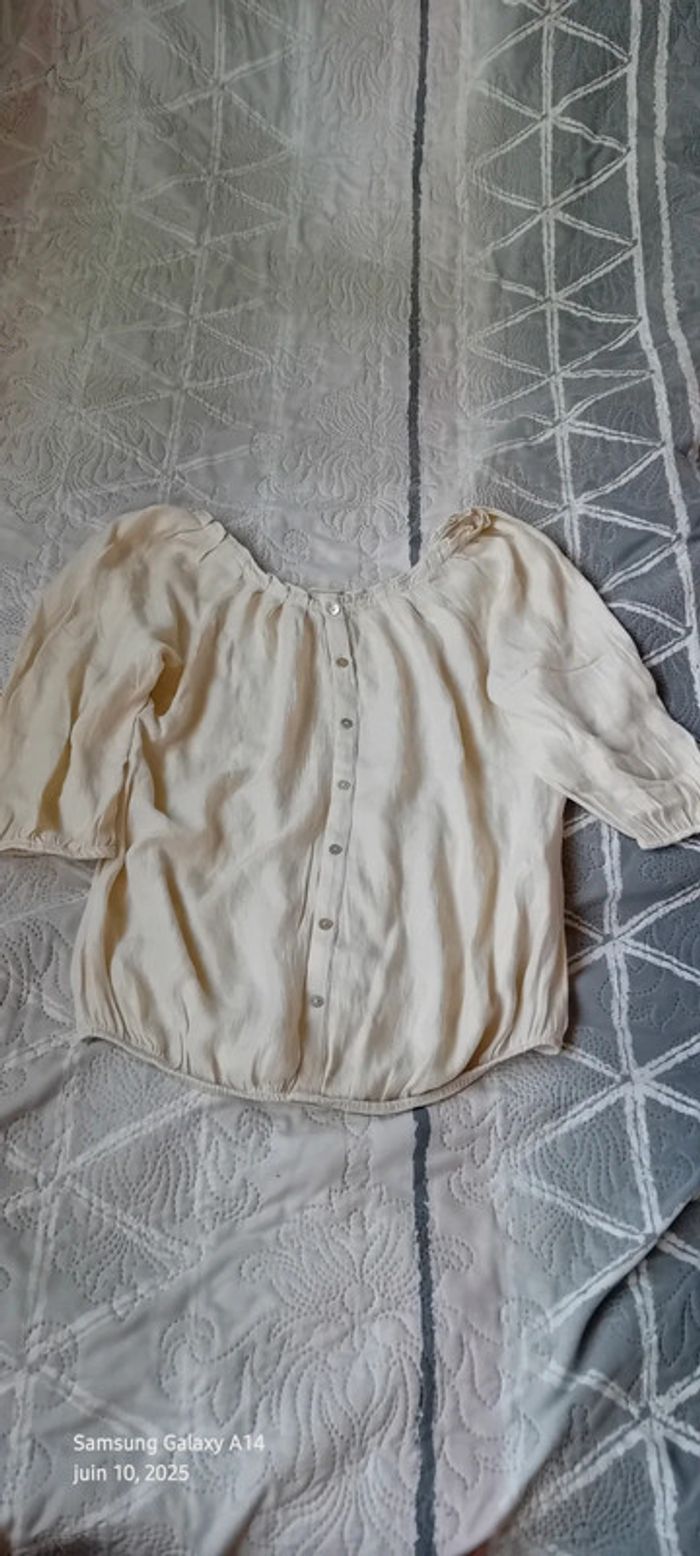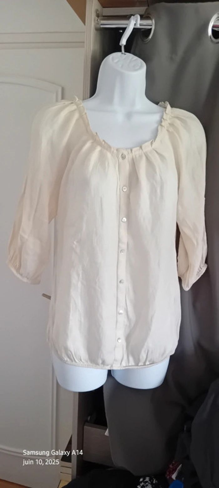 Blouse légère manches 3/4 col frisottis bas élastique crème femme L camaïeu - photo numéro 1