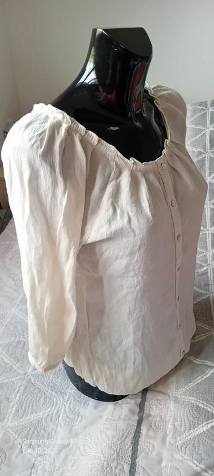 Blouse légère manches 3/4 col frisottis bas élastique crème femme L camaïeu - photo numéro 2