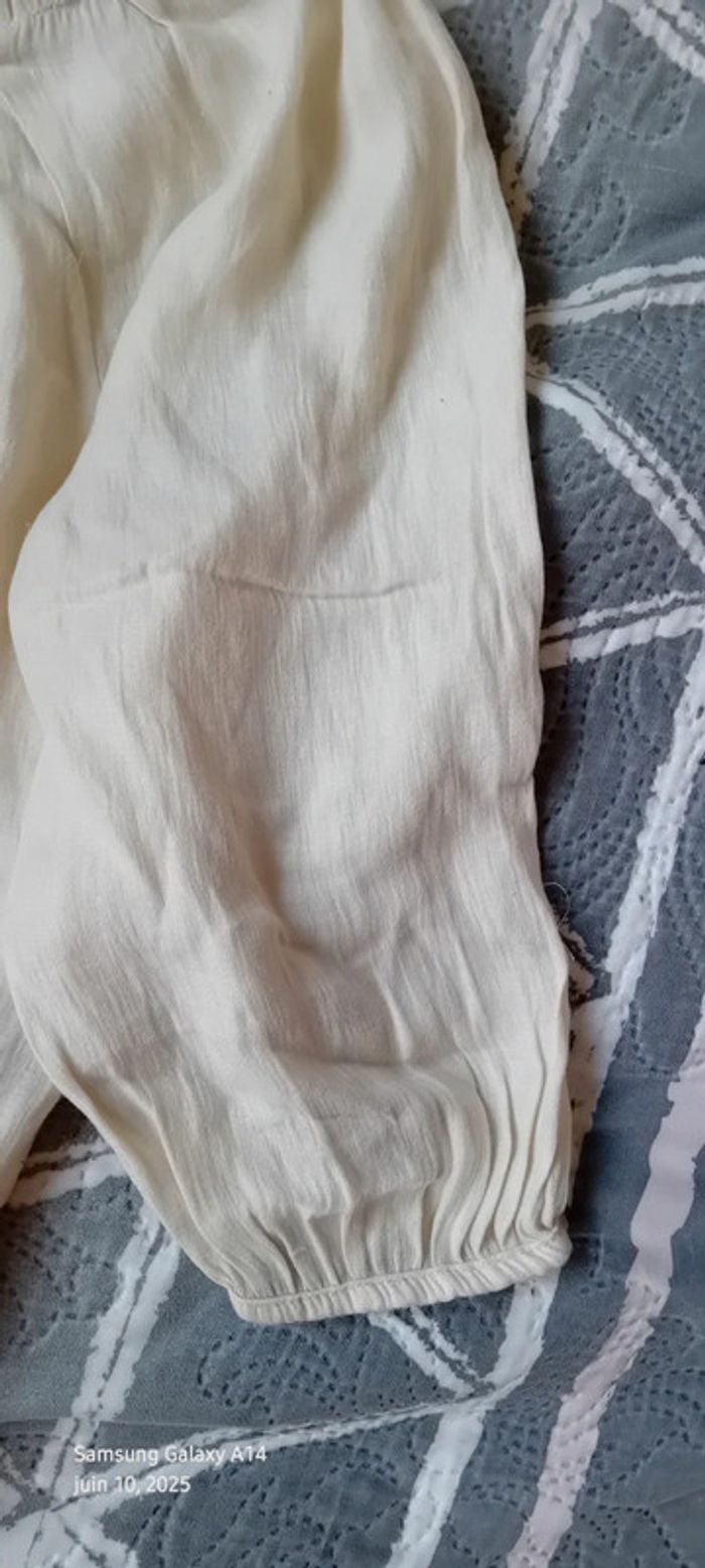Blouse légère manches 3/4 col frisottis bas élastique crème femme L camaïeu - photo numéro 6