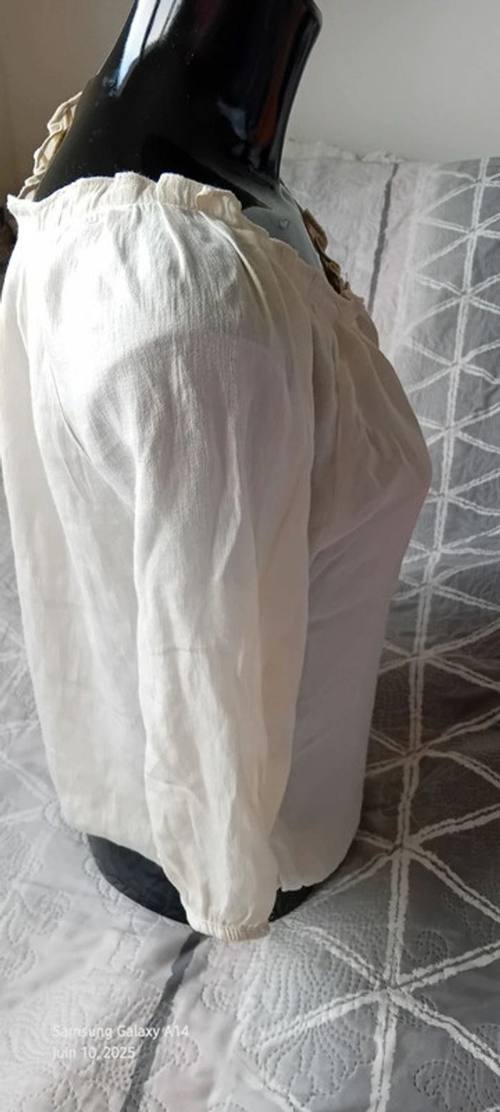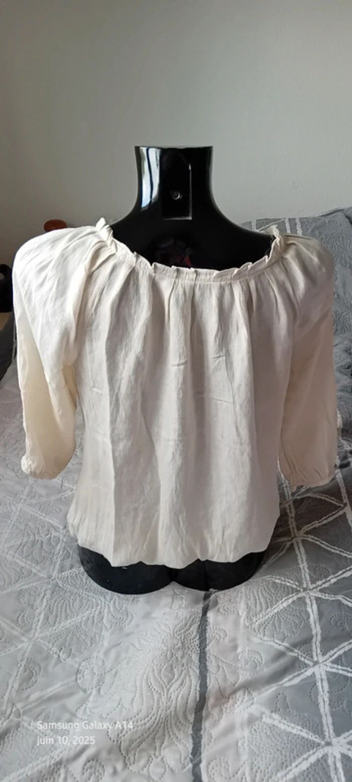 Blouse légère manches 3/4 col frisottis bas élastique crème femme L camaïeu - photo numéro 3