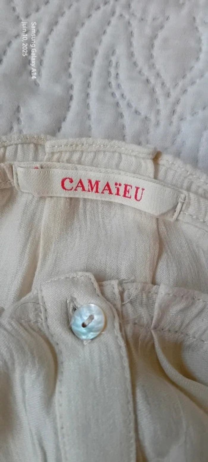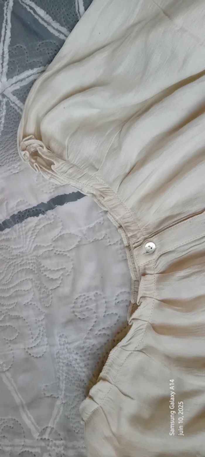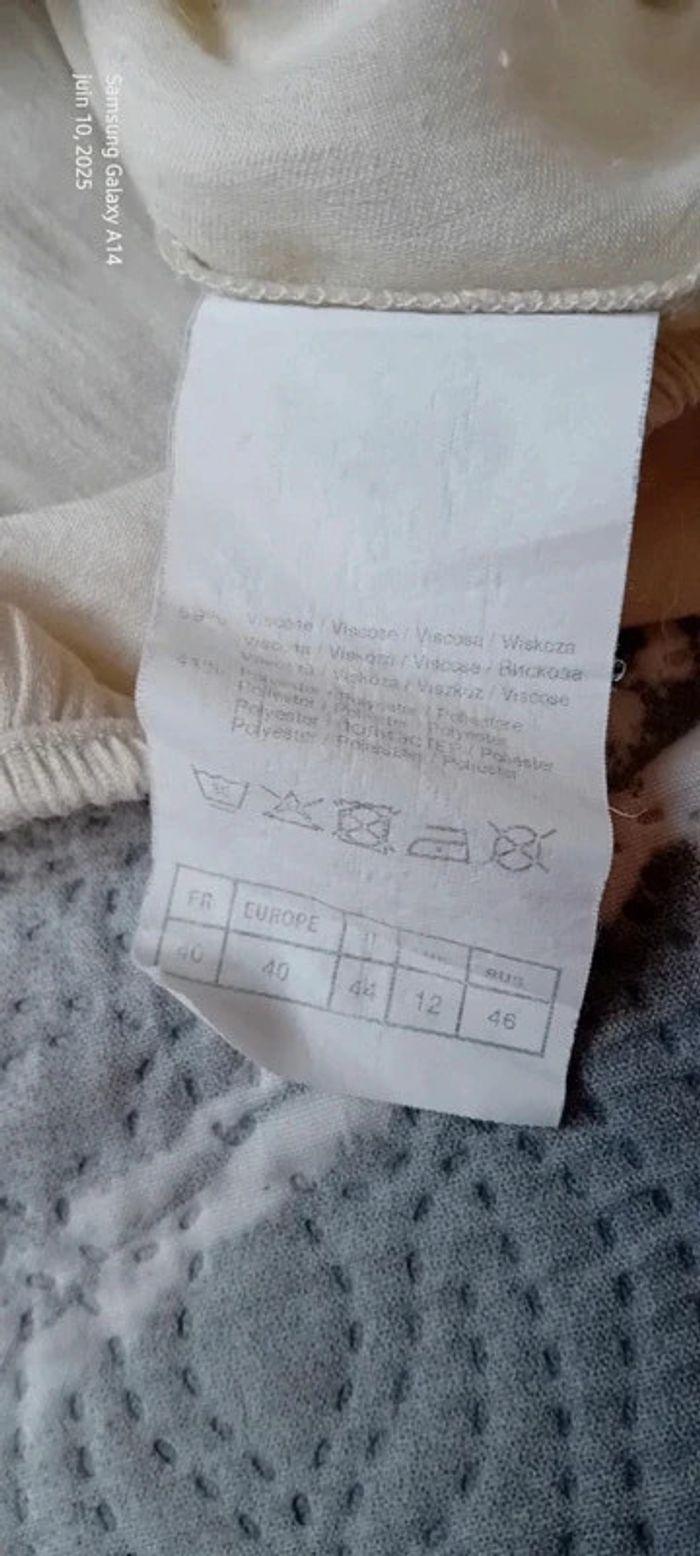 Blouse légère manches 3/4 col frisottis bas élastique crème femme L camaïeu - photo numéro 19