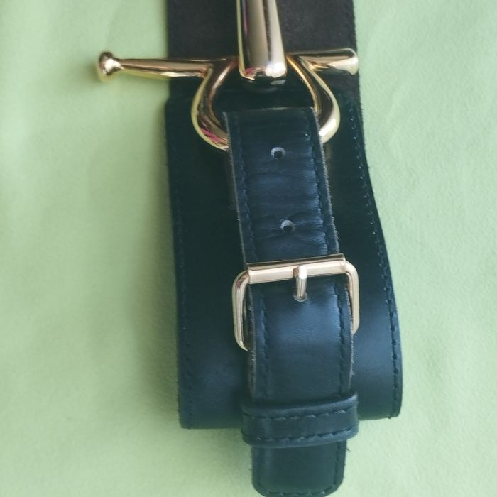 Ceinture noire Made in France Cuir véritable, boucle dorée métal lourd, de chez la Bagagerie Jean Marlaix, Largeur 5,8cm. Longueur 63cm. Intérieur daim.