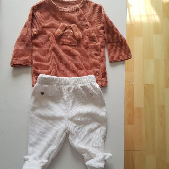 1ère main Comme neuf Le pull s'ouvre par pressions sur le devant Le pantalon peut être tenu par pression également