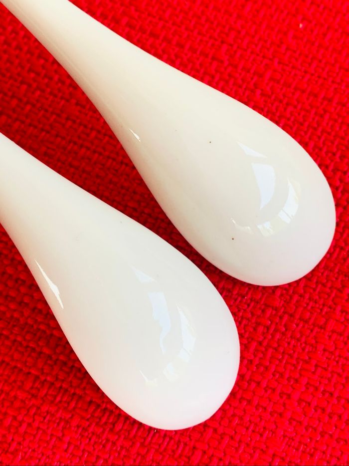 Lot de 2 petites cuillères en porcelaine blanche Pour servir des sauces ou autres Avec oeil de suspension Dimension Longueur 12.5cm ⛔️ Prix FIXES, NON négociables 🚨  👏🏻 Réductions sur les lots 👍🏻 #cuillere #porcelaine #petitecuillere #cc_divers