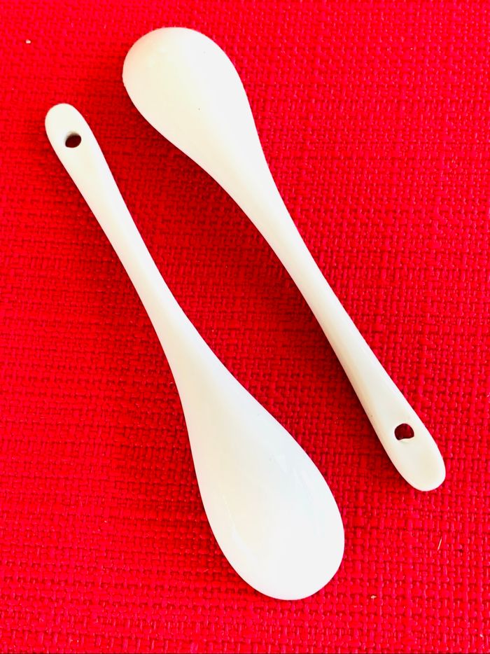 Lot de 2 petites cuillères en porcelaine blanche - photo numéro 1