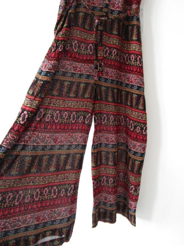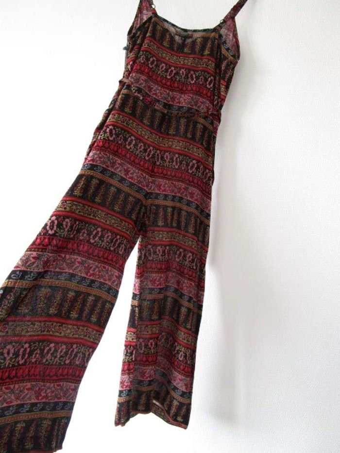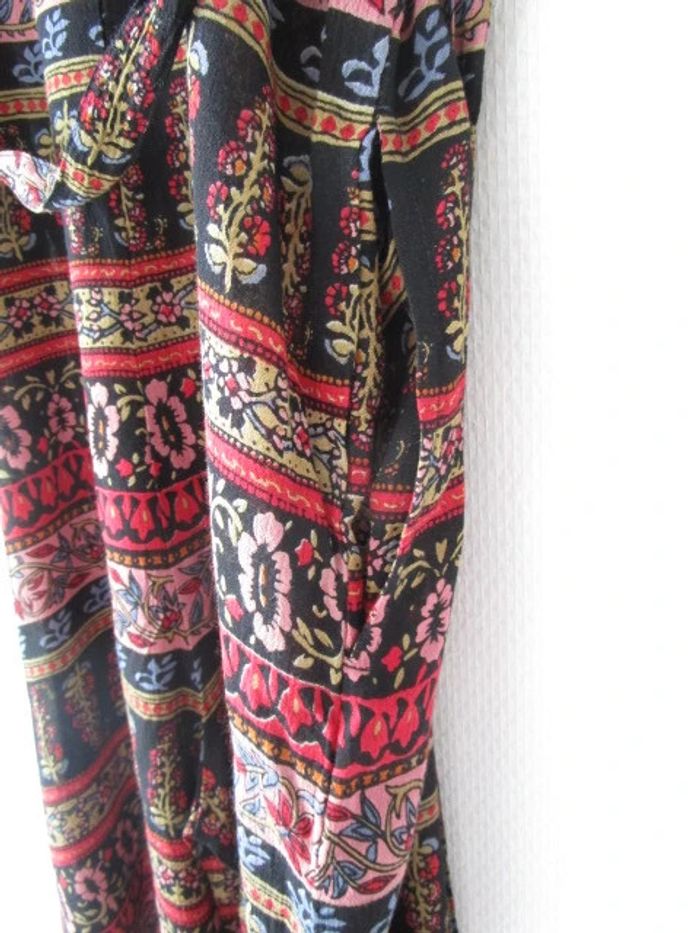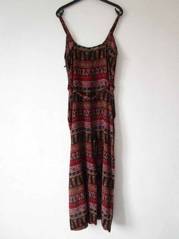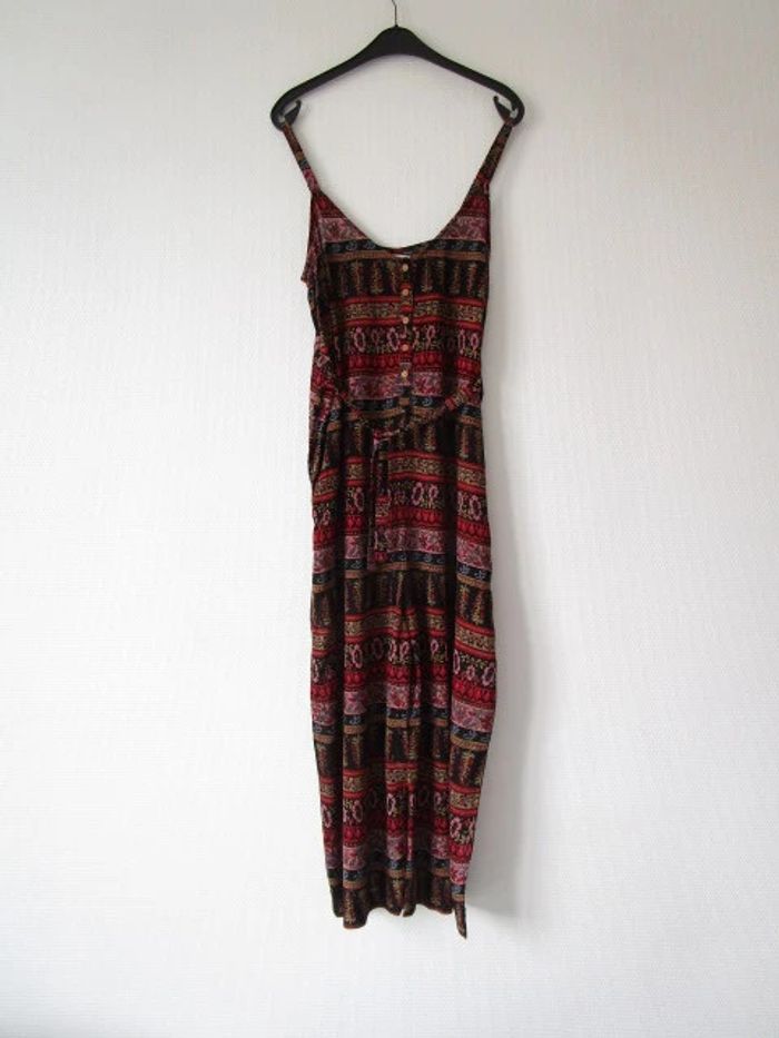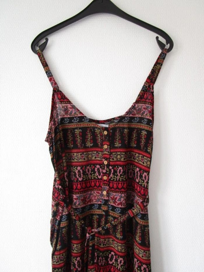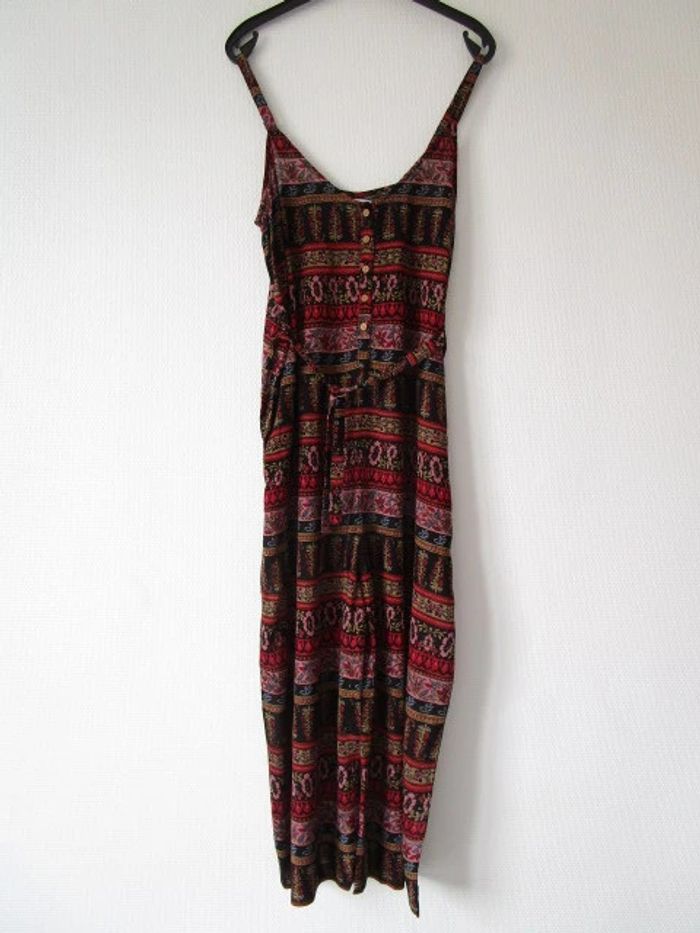 Combinaison été de marque L'atelier d'Anna Taille 2, correspond à du 38 (cf mesures) Noire imprimé rouge/rose pâle/vert anis/bleu ciel Forme ample Ceinture en haut de la taille Poches de chaque côtés Bretelles réglables Le bas est court, style pantacourt Pas d'étiquette de composition Largeur aisselle à aisselle : 48 cm Largeur hanches : 58 cm Longueur : 138 cm NEUVE avec étiquette #mamanbrade59femme38