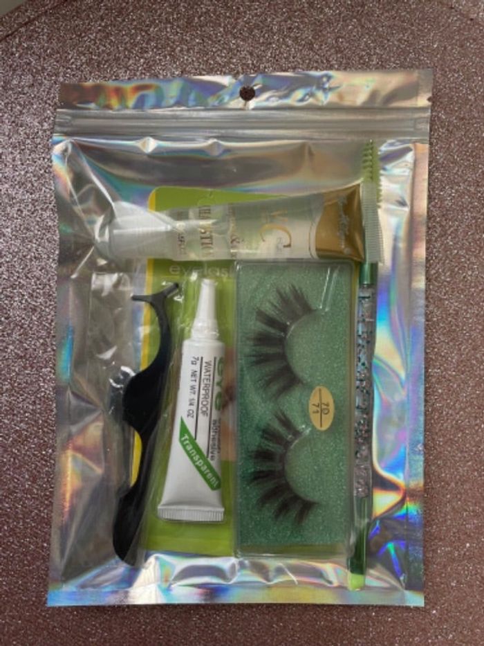 Sachet avec faux cils et accessoires