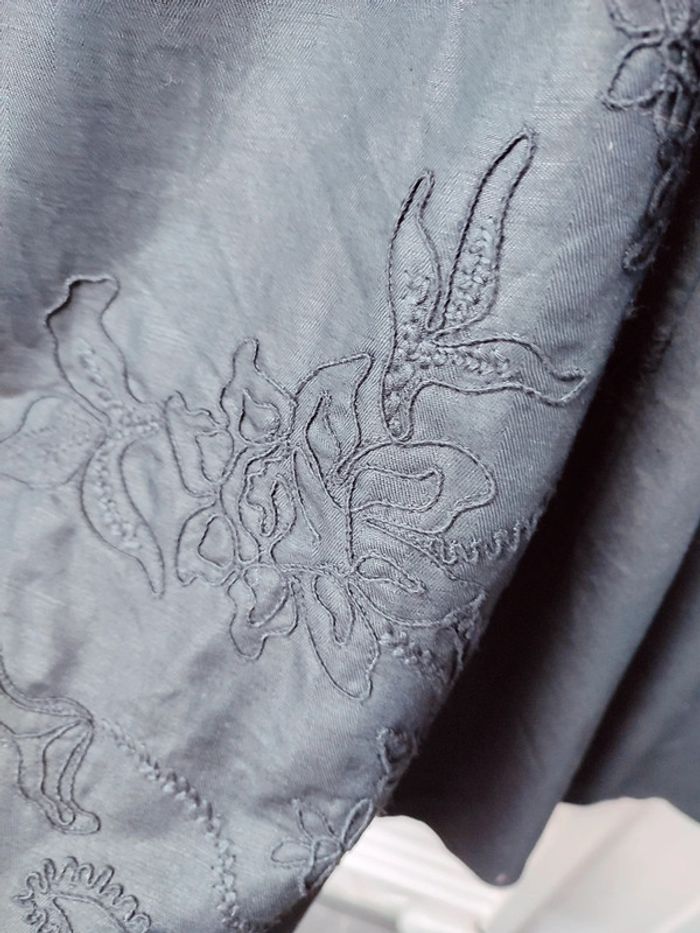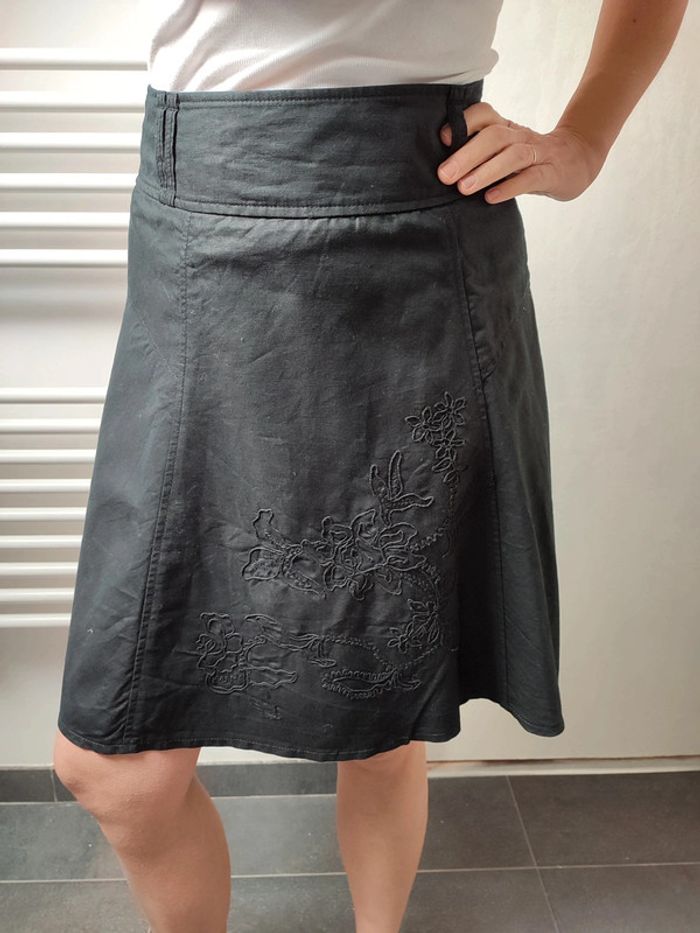 #iansolofemmetaille36 Superbe jupe lin et coton noire mat ou gris anthracite.. excellent état. Doublée. Broderies mesures en photo