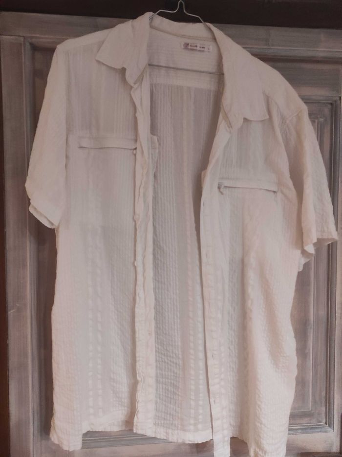 Chemise blanche avec effet non repassé et rayures, en coton. Taille L