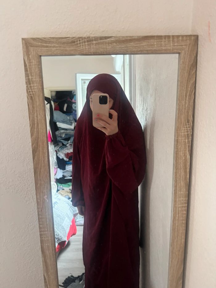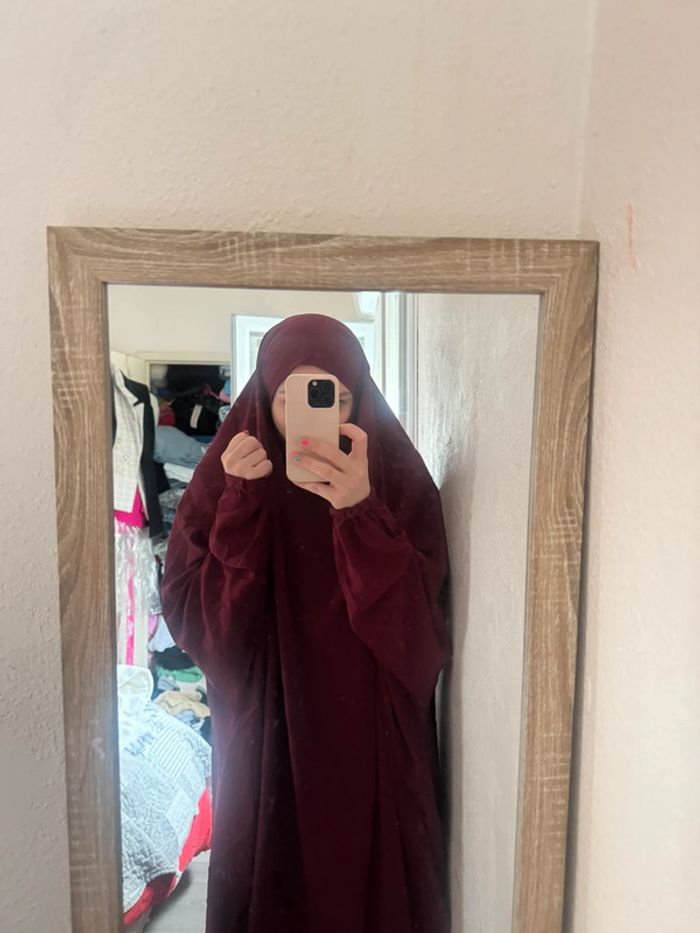 Jilbeb deux pièces jupe longue et voile couleur rouge bordeaux en très bon état . #floreteddy_tailleunique