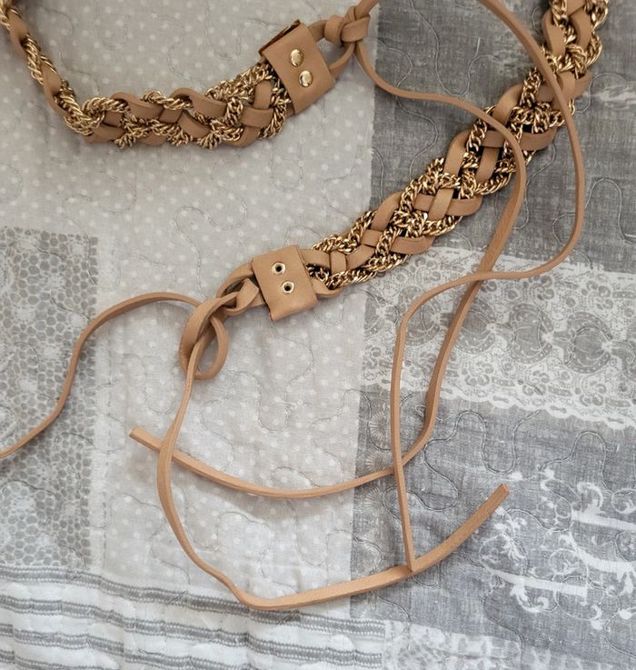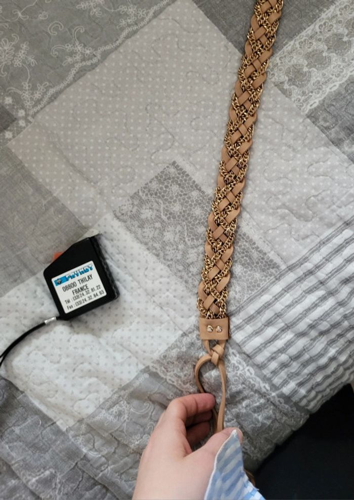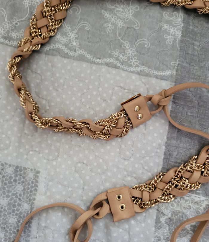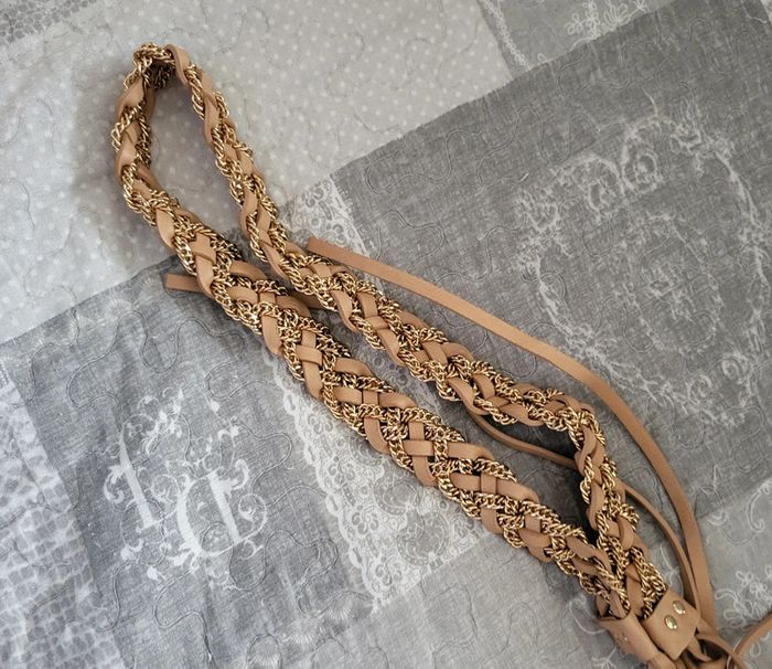 Ceinture tressée avec chaîne dorée, mesure 70 cm de long. On peut la mettre avec une jolie robe ou une combinaison. Très bon état. #floreteddy_accessoires
