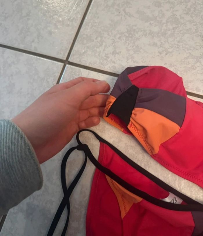 Maillot de bain rose , orange et violet de chez étam en taille xs bon état. #floreteddy_taille34