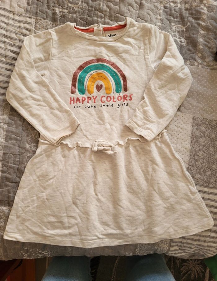 Robe pull grise motif arc en ciel en taille 4 ans de chez Gémo, juste une tâche sur la manches, pas gênant. Très bon état. #floreteddy_taille4ans