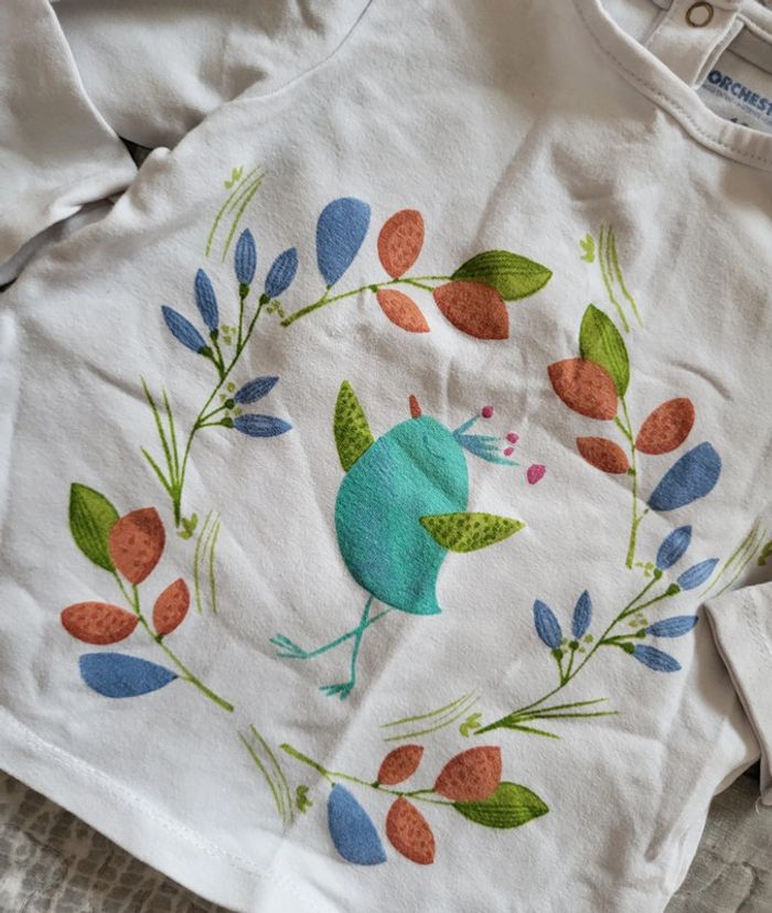Tee shirt blanc à manches longues imprimé oiseau feuilles en taille 18 mois. Bon état. #floreteddy_taille18mois