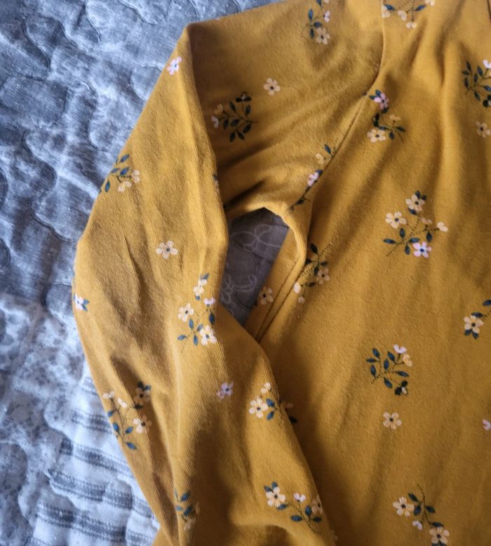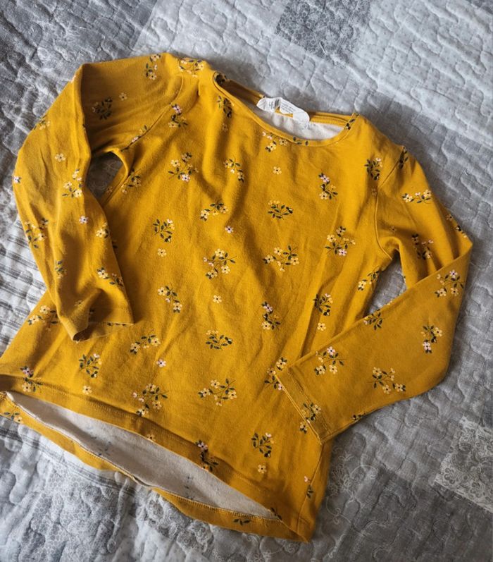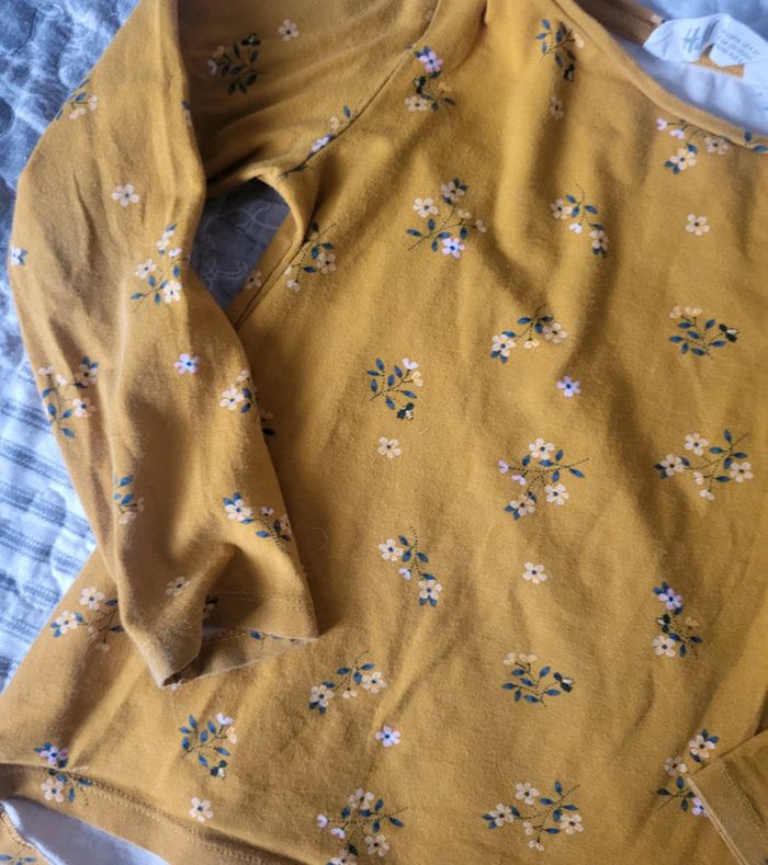 Tee shirt à manches longues jaune moutarde à fleurs de chez H&M, en taille 5/6 ans. Bon état. #floreteddy_taille5ans #floreteddy_taille6ans