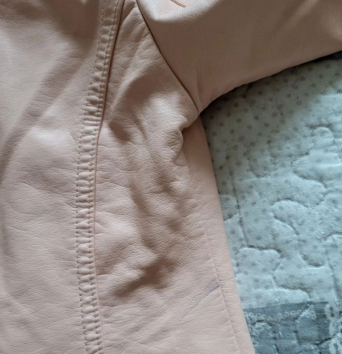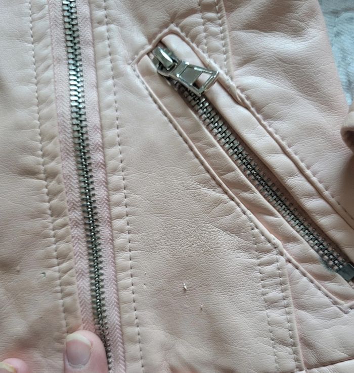 Veste en similicuir rose clair en taille 5 ans, de chez districenter, quelques petits défauts (voir photo). Bon état. #floreteddy_taille5ans