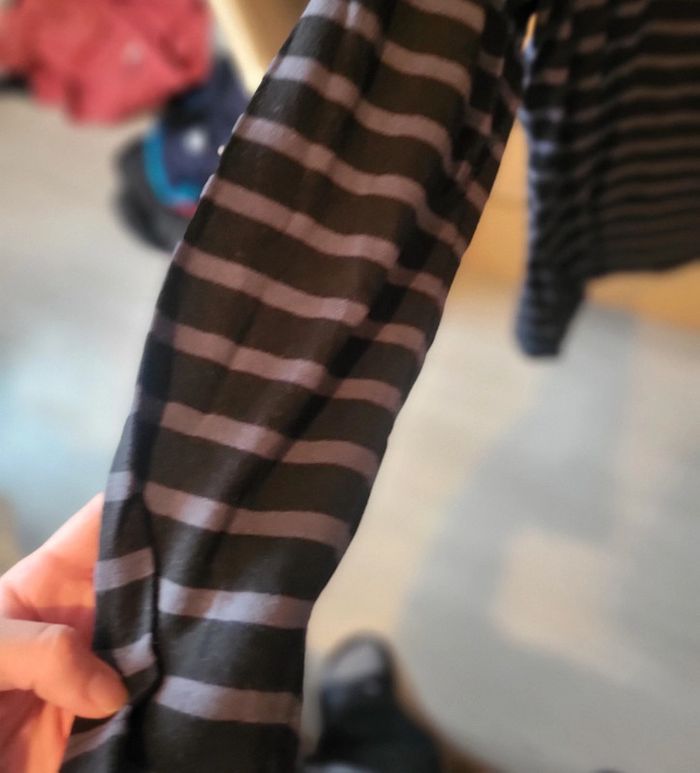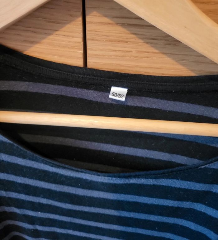 Tee shirt à manches longues à rayures noir et gris en taille 50/52. Très bon état. Aisselle a aisselles 60 cm et longueur 70 cm. #floreteddy_taille50 #floreteddy_taille52
