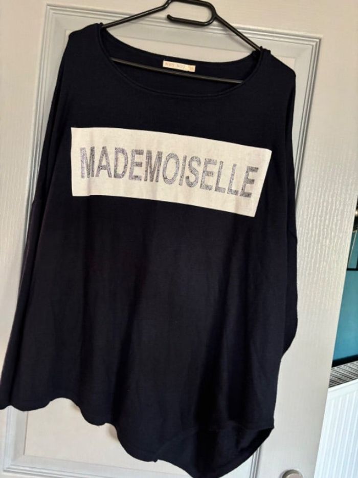 Jolie pull fin qui part en pointe en bas, Mademoiselle couleur marine TU mais ne convient pas au delà d’un 42. Marque why not #karen16femme