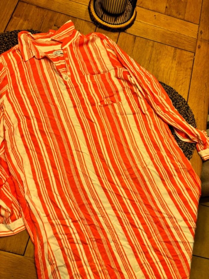 Tunique légère manche longue Phildar taille M couleur corail/orange et blanche à rayure très bon état #karen16femme