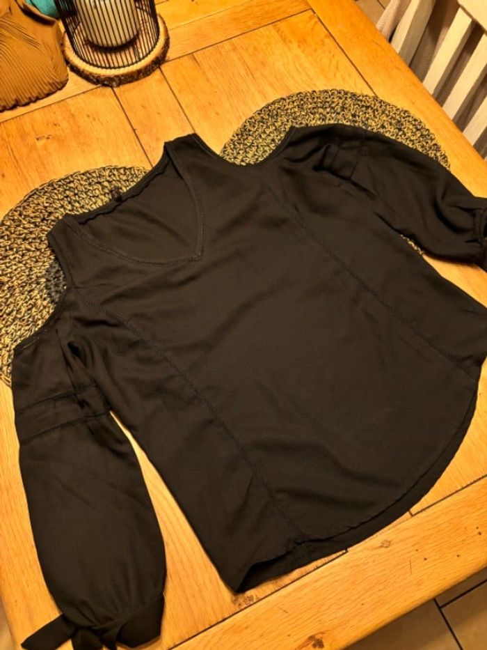 Jolie blouse noir, épaule dénudé, noeuds aux manches taille M marque On you très bon état #karen16femme