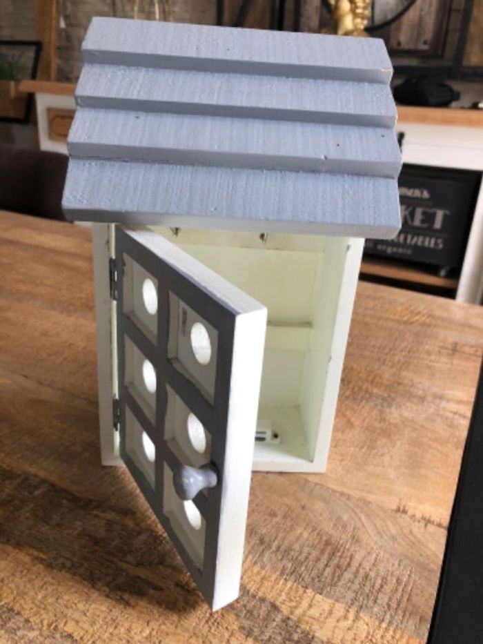 boîte à clés en bois en forme de maison. Bon état. A repeindre à votre convenance. 27/16cm