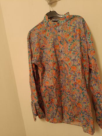 Tunique / chemise H&M noire en voile. Fluide, très agréable, doublée sauf les manches. Boutons au niveau du décolleté et des manches, possibilité de passer un fin cordon pour resserrer au niveau de la taile (pas fourni avec). Taille 36, 100% polyester #annick207T36