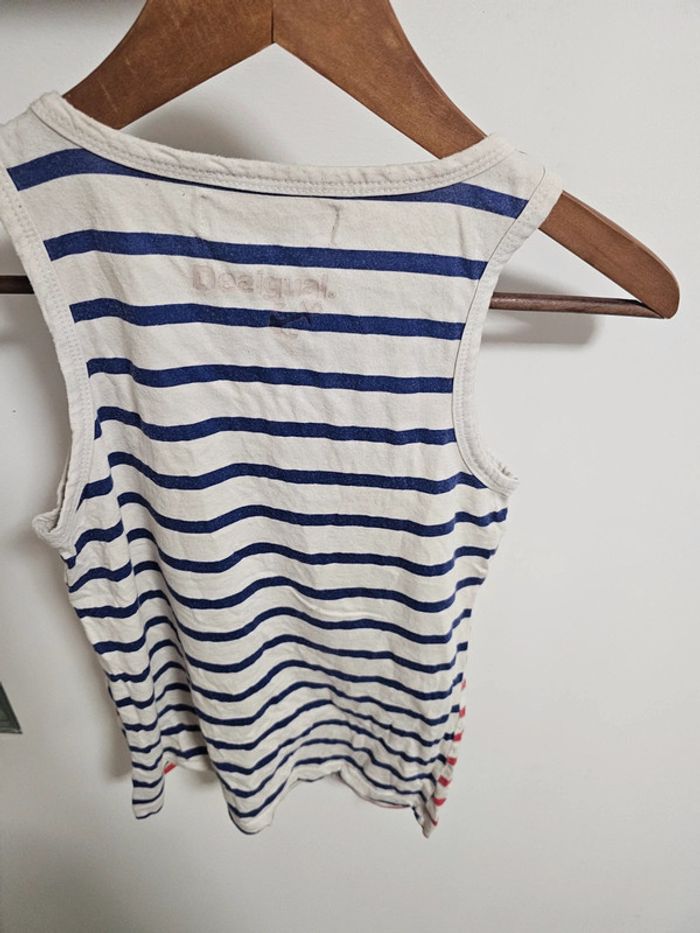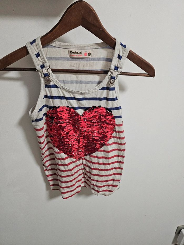 Tee-shirt desigual pour fille taille 12 ans Le coeur peut etre soit rouge soit bleu en fonction de vos envie A beaucoup été porter mais reste en bon état #desigualfille #marinière #taille12ans