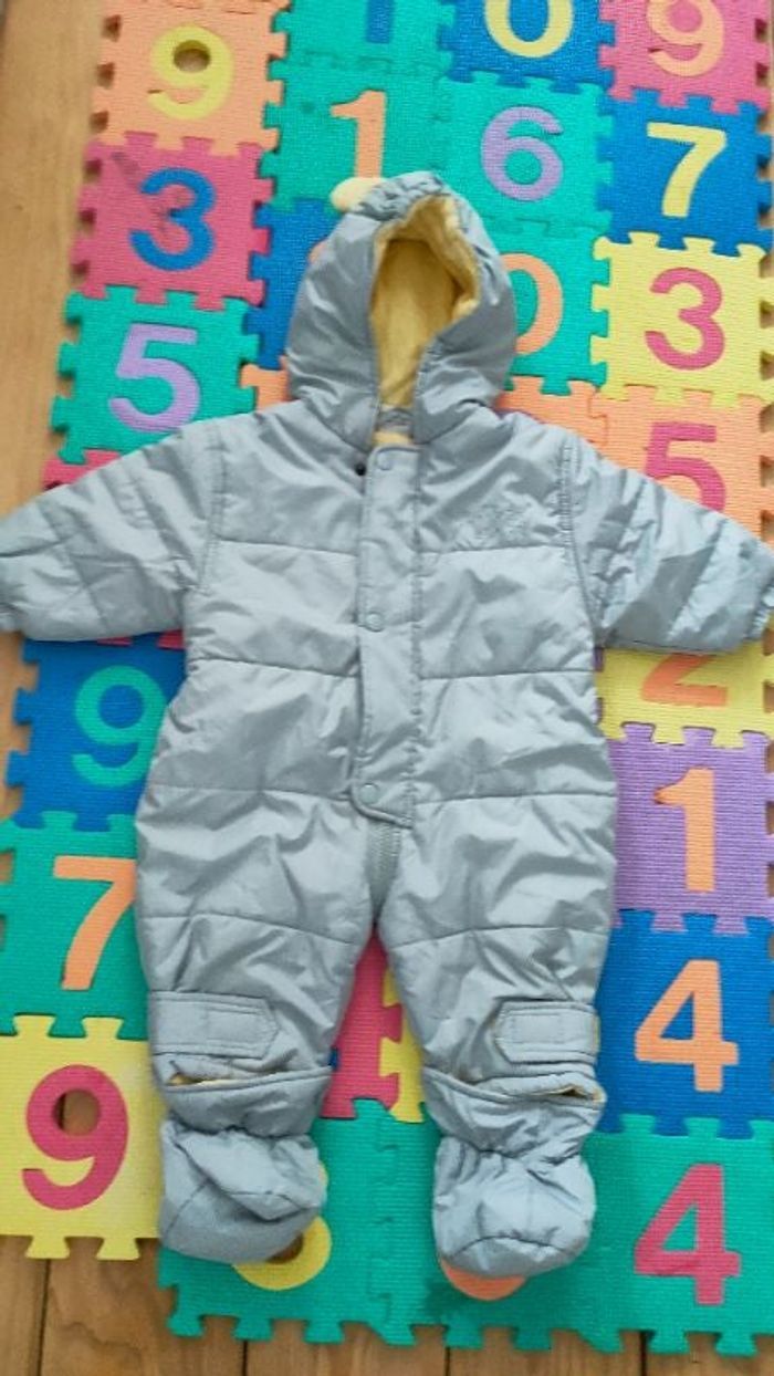 Un manteau combinaison gris et jaune taille 12 mois très peu portée
