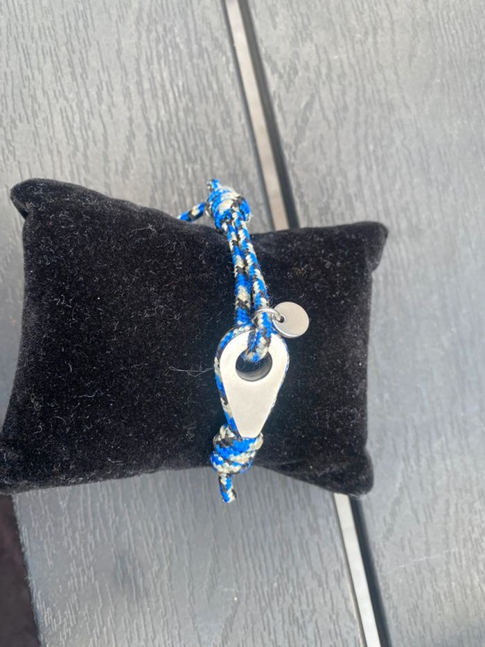 Bracelet inspiré du style marin, avec un solide cordon bleu façon corde nautique et un fermoir design noir façon manille. Look tendance, parfait pour l’été ou pour les fans de voile et d’aventures en mer ! Convient aux hommes comme aux femmes grâce à sa fermeture ajustable. Accessoire original, discret mais plein de caractère. État neuf, jamais porté. Style : Marin / Nautique / Casual chic Couleur : Bleu océan et noir État : Neuf Fermeture : Ajustable