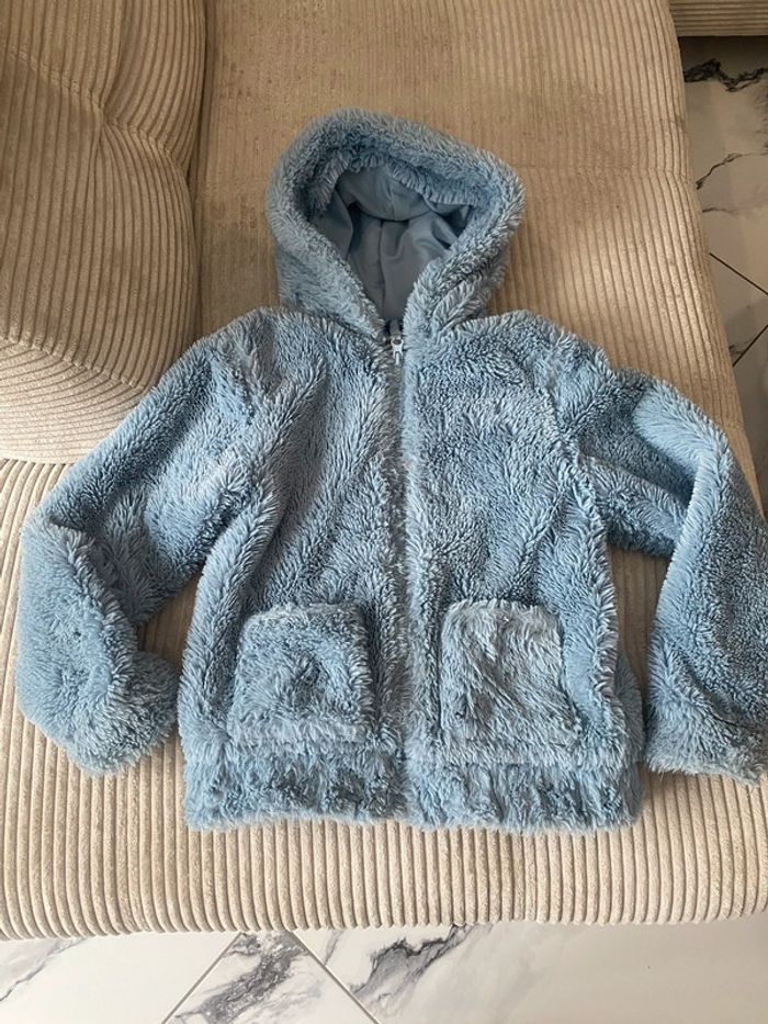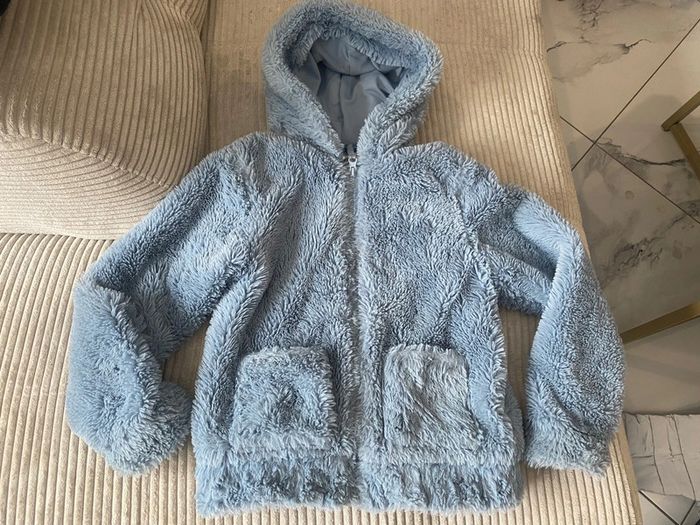 Magnifique manteau tout doux 8 -10 ans Bleu capuche avec petite oreille H&M Très bon état