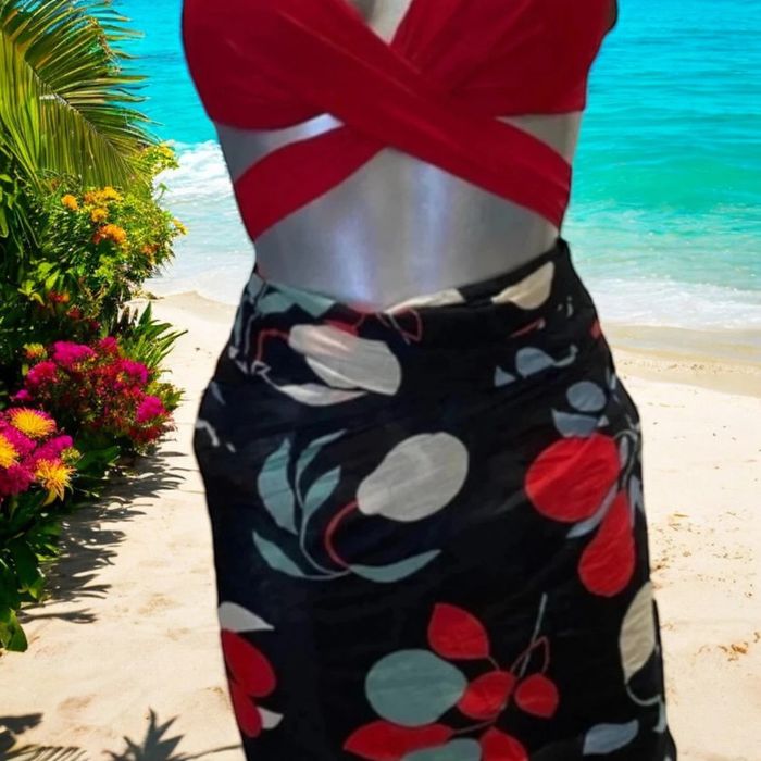 Magnifique paréo neuf de la marque princesse tam tam Matière très agréable, longueur largeur standard Couleurs pastels bleu turquoise rouge et noir