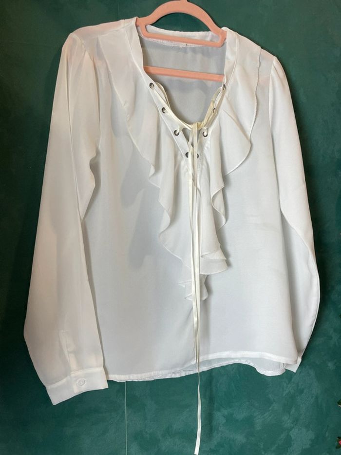 Magnifique chemisier blanc taille L avec laçage Très bon état