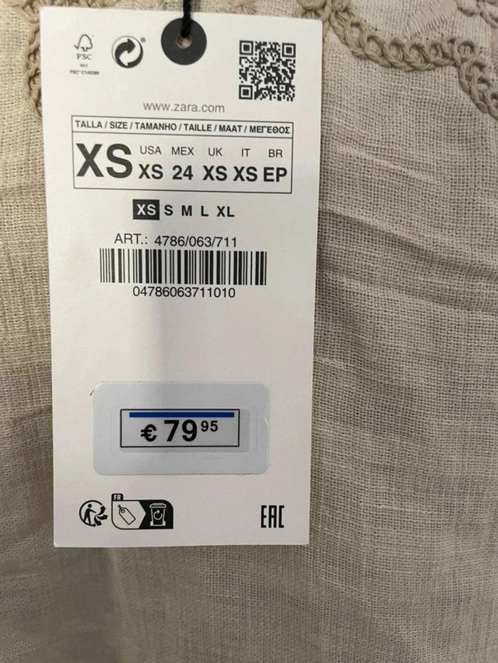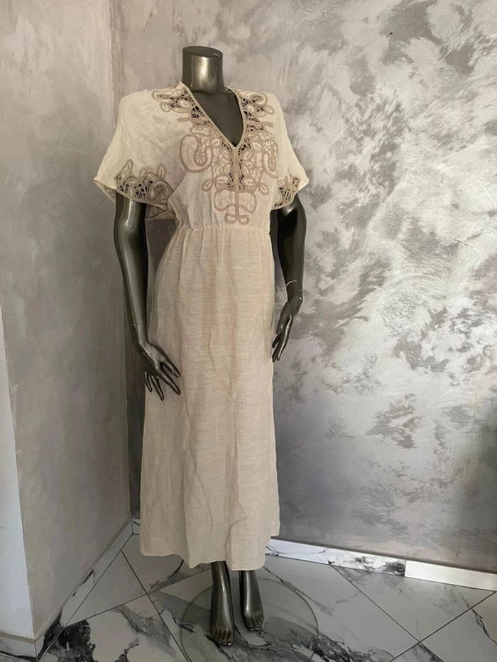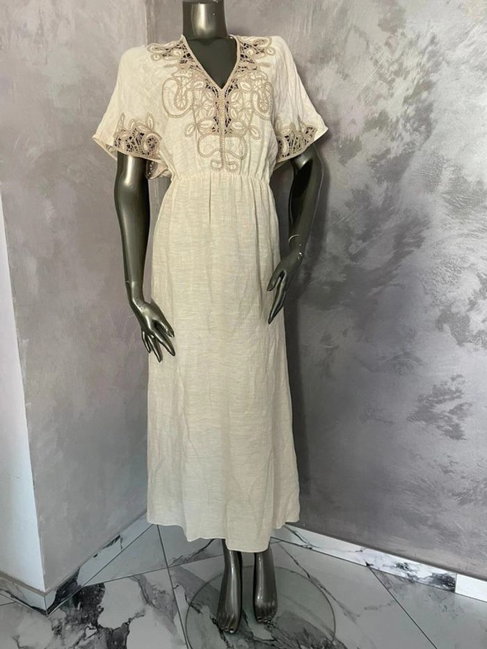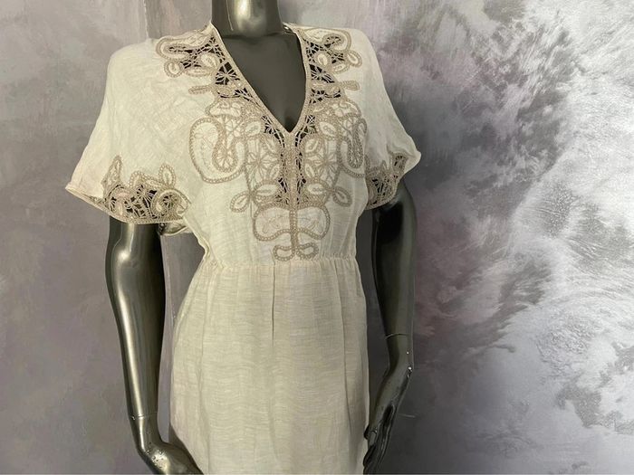 Magnifique robe Zara taille XS taille grand convient pour un S/M Coloris blanc cassé beige avec motifs Robe en lin