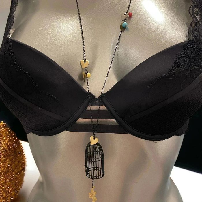 Magnifique pendentif avec cage à oiseau noir neuf Prix origine 24€