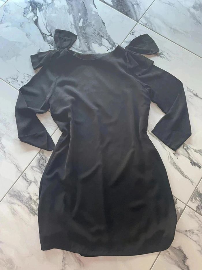 Splendide robe noir avec doublure et noeud aux épaules Bon état